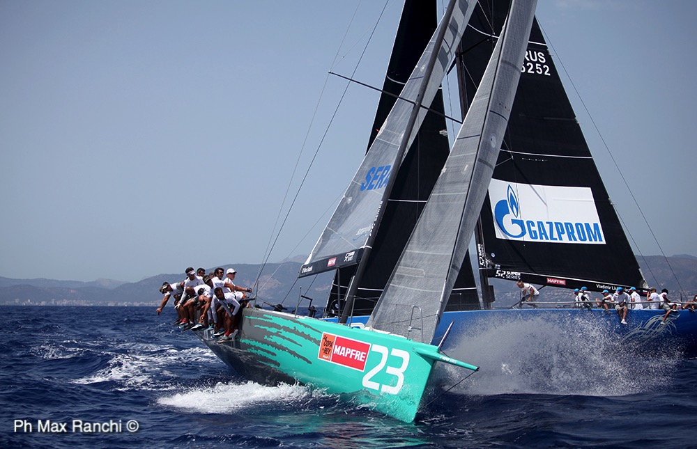 Una giornata di grande vela in quel di Palma de Mallorca, per l’evento clou della stagione spagnola, la 34ª edizione della Copa del Rey Mapfre. Le 52 SUPER SERIES non possono mancare a questo grande evento, dove lo spettacolo dei TP52 si fonde con le altre classi e i centinaia di velisti presenti. Azzurra la fa da padrona, dopo la vittoria al mondiale di Puerto Portals, a poche miglia da qui, i campioni in carica mettono subito le cose in chiaro, due ottime partenze, due regate impeccabili sotto ogni punto di vista ed il gioco è fatto, punteggio pieno davanti ad Alegre di Andy Soriano che con due secondi posti può dormire sogni tranquilli, un bel lavoro per gli inglesi oggi. Quantum Racing per un soffio non si prende due terzi posti, ma la giornata di apertura per gli americani, sempre in sofferenza in questa stagione, fa ben sperare, il podio è un obbiettivo reale. Si rivede la grinta e la velocità di Platoon, davanti a Sled. Il resto delle flotta va a fasi alterne, per vincere queste regate il target deve essere regolato dalla continuità nei risultati, Provezza e Bronenosec ne sono l’esempio, una regata nelle zone alte e una da dimenticare, i conti si fanno alla fine ma la matematica non è un opinione.