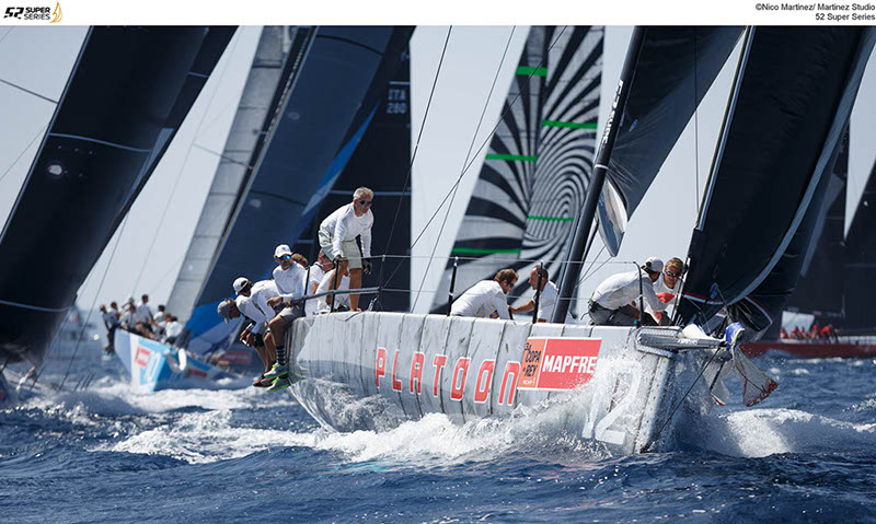 La cronaca della giornata: come da programma il Comitato di regata mette in acqua due regate a bastone: vento tra i 12/14 nodi e una previsioni in crescita nell’arco del pomeriggio. Alle 13:15 arriva il primo start. Platoon in gran spolvero sulla linea insieme a Paprec e Sled, c’è grande agonismo in acqua oggi. Harm Müller-Spreer dimostra di essere un timoniere molto aggressivo e il suo team oggi gira alla grande, Platoon alla boa di bolina ha già un bel vantaggio su Sled e Spookie, bella sorpresa di questa quarta tappa delle 52 SUPER SERIES. Il vento sale, queste barche volano, Platoon ancora in testa seguito da Sled e Azzurra, il leader della classifica generale è sempre in ottima posizione. Fantastiche condizioni meteo a Palma de Mallorca, planate spettacolari. Platoon sorride per la sua posizione in classifica, con questa vittoria vola in seconda posizione nella generale, Sled è secondo e Azzurra ottima terza mantenendo sempre un target alto di risultati. Il cambio al timone di Quantum non rende come ieri, addirittura nono, Bronenosec è quarto dietro Azzurra. La seconda regata prende il via alle 15:15, Paprec in pin seguito da un ottimo Platoon, anche Sled non è da meno, condizioni di vento intorno ai 18/20 nodi, che spettacolo questa flotta. Platoon ha un gran bello slancio oggi, è in testa anche nella seconda prova davanti a Bronenosec, Paprec e Azzurra, vantaggio annullato per gli italiani, Quantum non brilla. Bel vantaggio dei tedeschi, al passaggio della boa con 30 secondi sui russi, Xio in quarta posizione, ottima prova per il secondo team italiano in gara. Platoon è come un missile, imprendibile la barca tedesca, bagarre alle spalle, dietro alla corazzata teutonica che fa doppietta, arriva Bronenosec davanti a Paprec, Azzurra, Quantum, Gladiator, Xio, Spookie, Sled Alegre e Provezza.