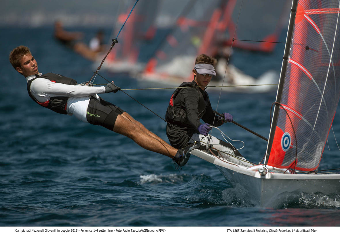 Conclusione in grande stile per gli oltre 400 giovani velisti impegnati nei Campionati Nazionali Giovanili classi in doppio 2015, la manifestazione organizzata su delega della Federazione Italiana Vela dal Comitato di circoli formato dal Club Nautico Follonica, Club Nautico Scarlino e Lega Navale Italiana di Follonica, con base logistica presso il Marina di Scarlino e il Camping Piper a Puntone. Anche oggi, quarto e ultimo giorno di regata, il golfo di Follonica, incurante delle perturbazioni che nelle stesse ore hanno afflitto le regioni dell’Italia centrale, ha offerto alle oltre 200 barche scese in acqua suddivise in sei classi, condizioni ideali per lo svolgimento delle ultime prove previste, una costante di questi quattro giorni.