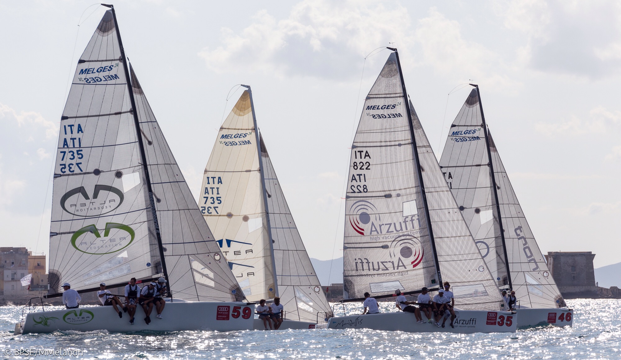rezza praticamente assente a Trapani, dove verso le 15 si è chiusa la seconda giornata del Campionato Italiano Melges 24, quarto Act delle Audi tron Sailing Series (King of Salt) organizzate da B.Plan Sports&Events in collaborazione con Melges Europe.