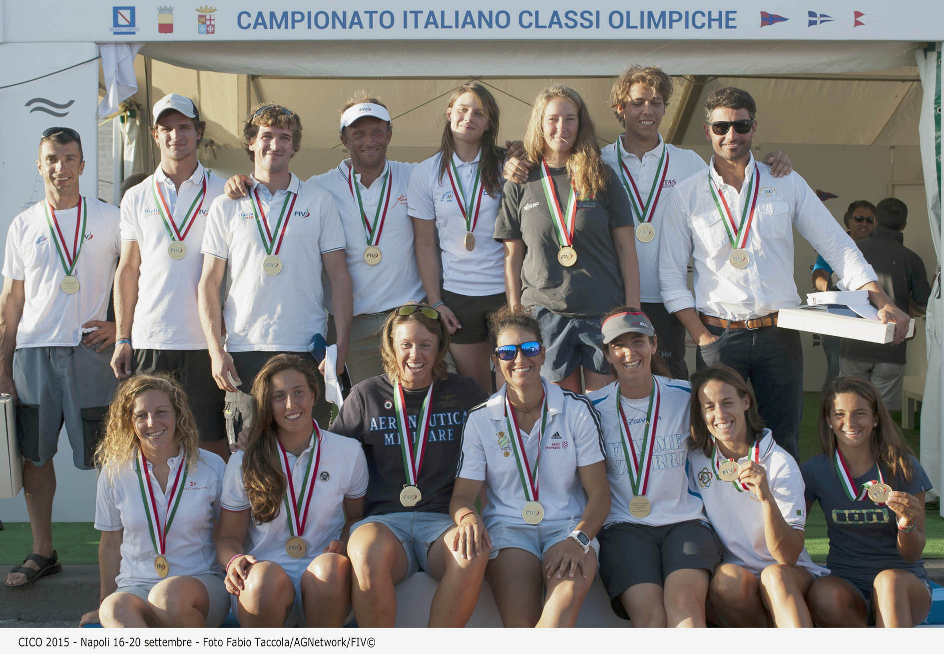 Titoli che dopo quest’ultima, fantastica giornata di regate, disputata con una brezza tra gli 8 e i 12 nodi d’intensità che fin dalla tarda mattinata si era distesa perfettamente lungo tutto il golfo di Napoli, valorizzando al massimo lo spettacolo della vela olimpica, sono andati a Stefano Cherin e Andrea Tesei (YC Porto San Rocco-YC Adriaco) per la classe 49er, a Giulia Conti e Francesca Clapcich (CC Aniene-Aeronautica Militare) per il 49er FX, a Vittorio Bissaro e Silvia Sicouri (Fiamme Azzurre) per i Nacra 17, a Mattia Camboni (Fiamme Azzurre) per la tavola a vela RS:X uomini, a Laura Linares (Marina Militare) per la tavola RS:X donne, a Matteo Evangelisti (LNI Civitavecchia) e Giorgia Speciale (SEF Stamura) per la tavola RS:X Youth, a Michele Paoletti (SV Barcola Grignano) per il Finn, Giacomo Ferrari e Giulio Calabrò (LNI Ostia) per il 470 uomini, Benedetta Di Salle e Alessandra Dubbini (YC Italiano-CV Toscolano Maderno) per il 470 donne, Marco Gallo (Fiamme Gialle) per il Laser Standard, Joyce Floridia (Fiamme Gialle) per il Laser Radial e Antonio Squizzato (SC Garda Salò) per la classe paralimpica dei 2.4 mR.