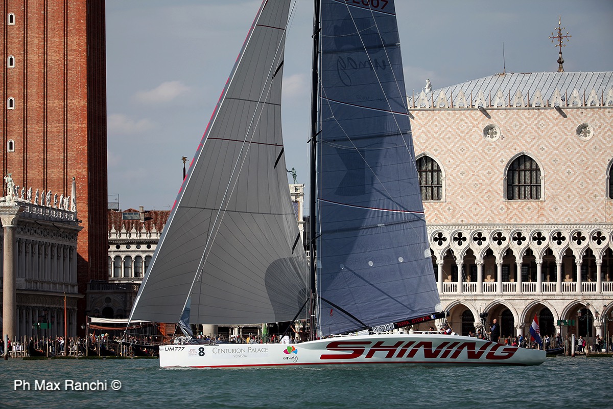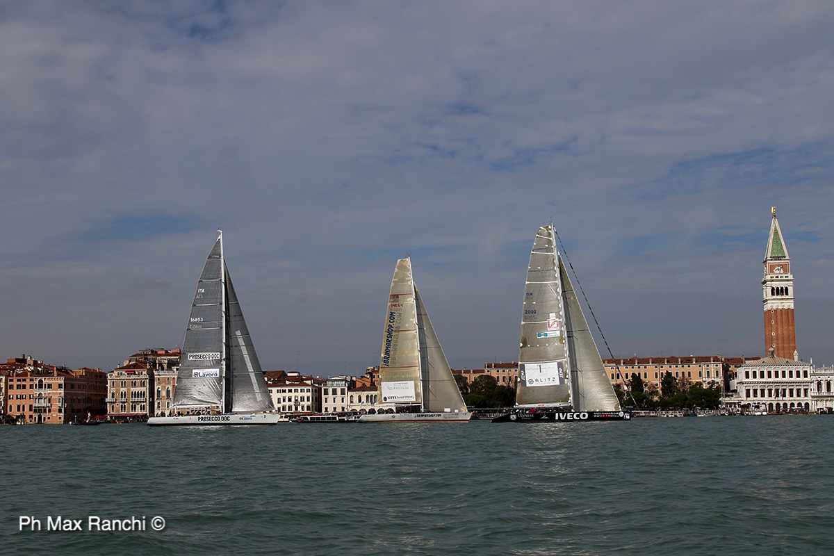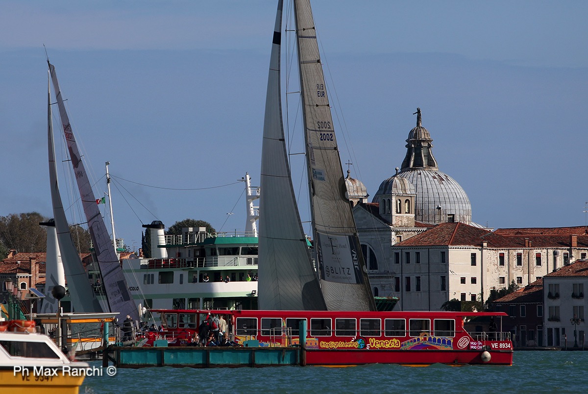 È stata una regata emozionante e difficile con vento leggero fino a 3 nodi e di direzione variabile. Puntuale alle 13.26 i maxi sono partiti dopo il conto alla rovescia reso ancora più spettacolare dai getti d’acqua di un rimorchiatore. Jena è partito primo seguito da Idrusa e Ancilla Domini. Brutta partenza per i croati di Shining che si sono lanciati alla rimonta, arrivando a girare primi la boa di bolina davanti a Sant’Elena. Sotto boa si è accesa la lotta tra Pendragon, Jena, Idrusa e Ancilla Domini. Shining si è allungato nel lato di poppa con Jena distaccata al secondo posto, quindi Pendragon e a seguire Ancilla Domini e Anywave con i due campioni Mauro Pelaschier e Paul Cayard che hanno ingaggiato un’avvincente lotta. Qualche difficoltà in manovra per Shining al giro di boa davanti alle Zattere che ha perso tutto il vantaggio su Jena, tanto che a pochi metri dall’arrivo la barca croata si è fatta soffiare per un pelo il primo posto.