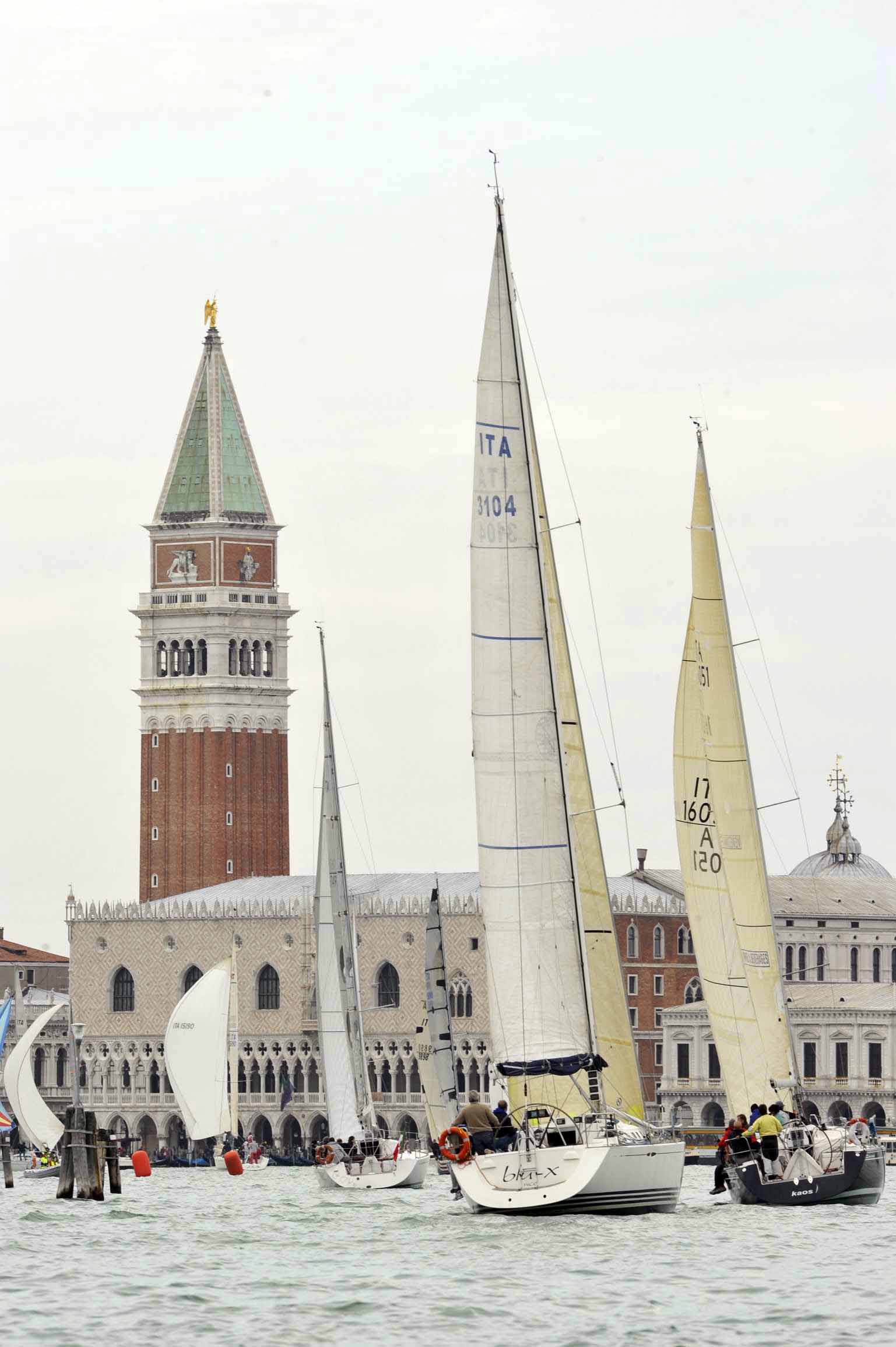 All’ingresso nel canale del Lido il maxi yacht che il giorno prima aveva già vinto il Challenge è sempre primo con duecento metri di vantaggio. Margine che rimane invariato al passaggio davanti al cancello obbligatorio in prossimità del Forte di Sant’Andrea.