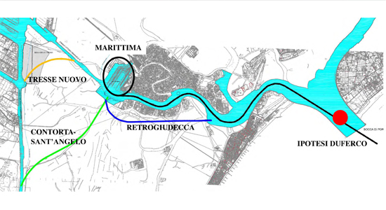 - salvaguardare l’efficienza del porto commerciale e industriale a Marghera eliminando le interferenze tra traffico merci e passeggeri;