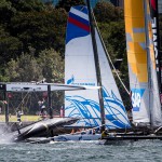 La seconda prova della seconda giornata dell’act 8 della Extreme Sailing Series™ sarà ricordato dal Lino sonego Team Italia come il momento più ad alta tensione della stagione. Una raffica inaspettata ha “ribaltato” letteralmente l’Extreme 40 italiano, mettendo in apprensione le migliaia di persone accorse per l’evento clou di questa stagione. Stanno tutti bene e dopo neppure trenta minuti, i ragazzi capitanati dallo Skipper Enrico Zennaro si sono fatti trovare nuovamente sulla linea di partenza.