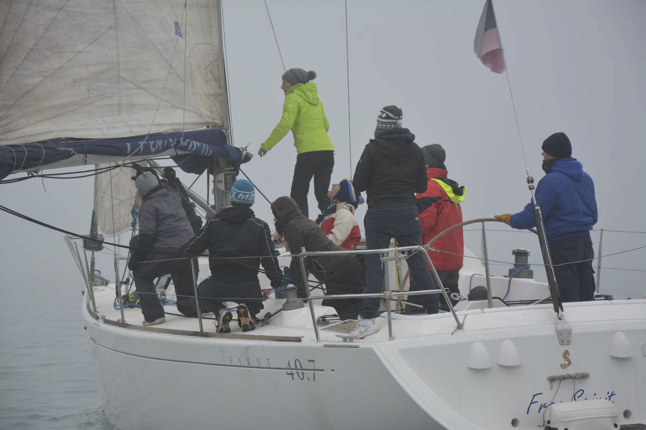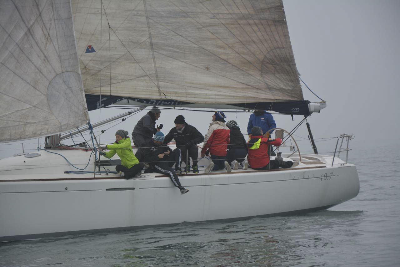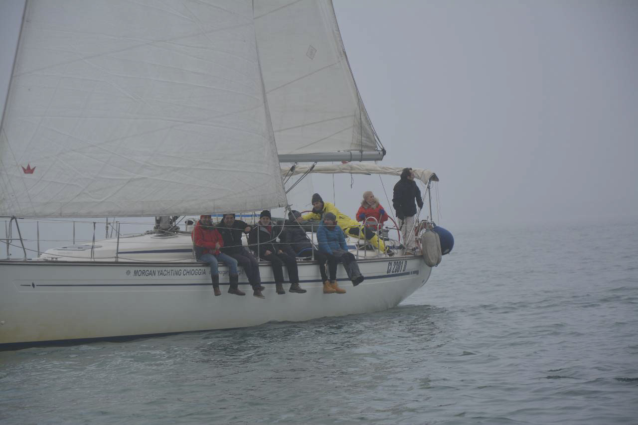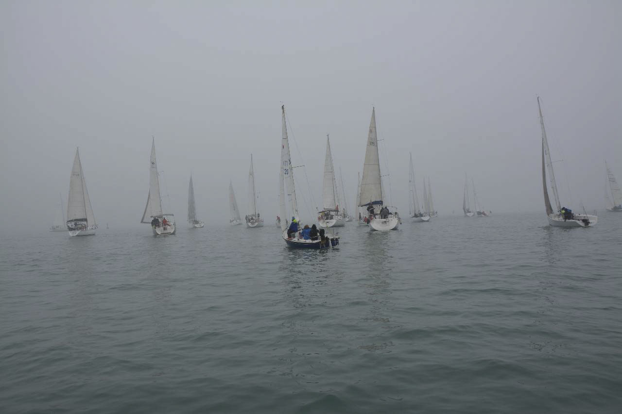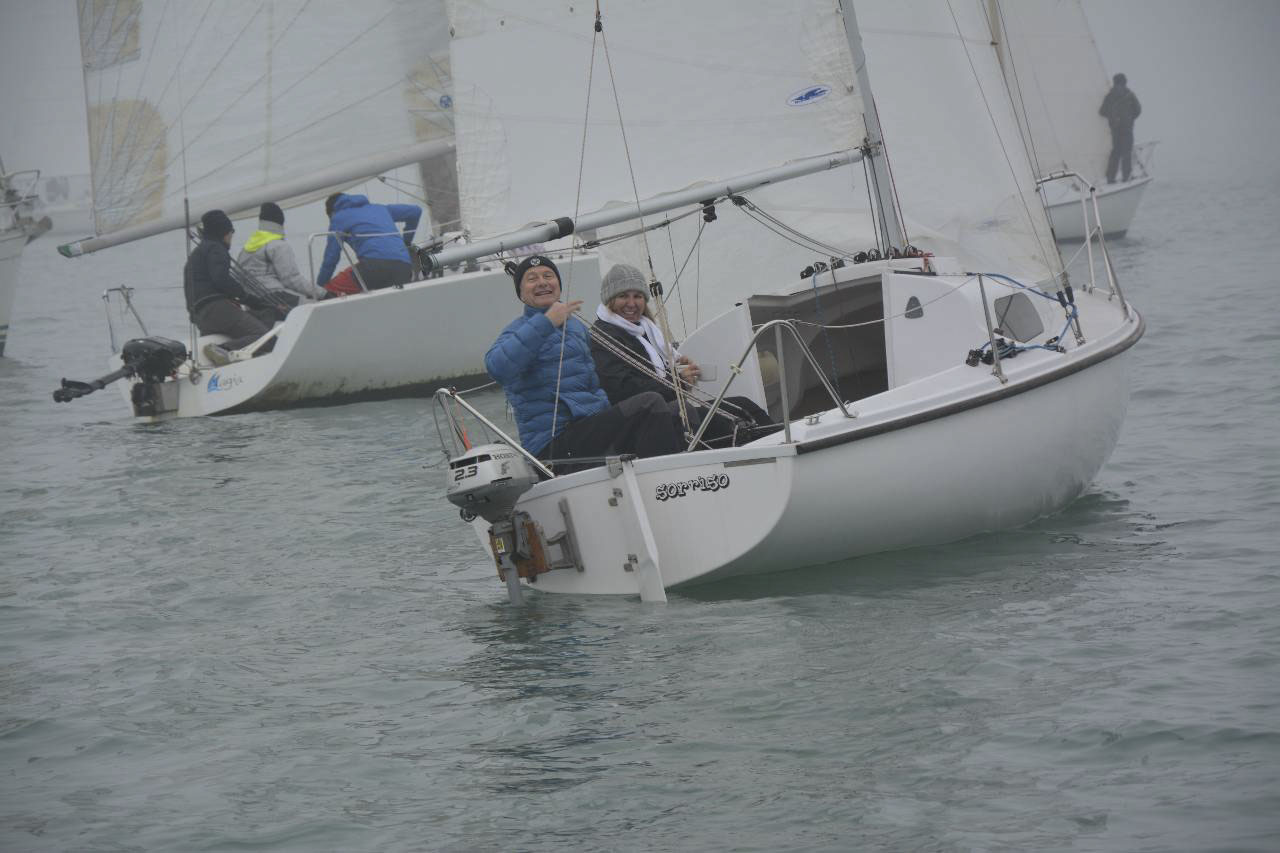 A far da cornice alla manifestazione, per la prima volta intitolata alla memoria di Roberto Ferro, una nebbia leggera e poco – troppo poco – vento. A complicare ancora di più le cose al comitato di regata e ai quasi duecento regatanti la forte corrente in uscita che non ha permesso alle imbarcazioni in regata di completare il giro del canale della Perognola come da programma, facendo così annullare la veleggiata pochi minuti dopo lo start.