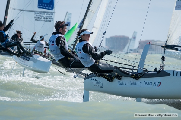 Regate che hanno avuto in Vittorio Bissaro e Silvia Sicouri i protagonisti, con tanto di vittoria nell’ultima prova, un risultato che unito al quarto, al decimo e al 23mo delle prime tre regate del giorno (e all’undicesimo ottenuto martedì), ha portato i due azzurri fino al quarto posto della classifica generale provvisoria, dietro ai leader francesi Besson-Riou, ai danesi Norregard-Andreasen e agli altri transalpini Vaireaux-Audinet, distanti solo due punti da Bissaro-Sicouri.