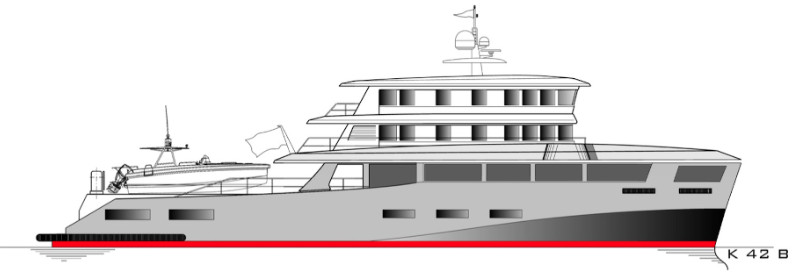 Disegnata, pensata e costruita seguendo il concetto “explorer”, navigando in sicurezza anche nelle zone più remote e alla latitudini più estreme, il M/Y K-42 sarà, come il precedente, un semi custom realizzato con materiali e finiture di altissimo pregio per soddisfare le esigenze del cliente. Sulla base di una collaudata piattaforma – ogni potenziale cliente di questa serie potrà scegliere sovrastrutture, lay out, allestimenti e décor personalizzandoli completamente.