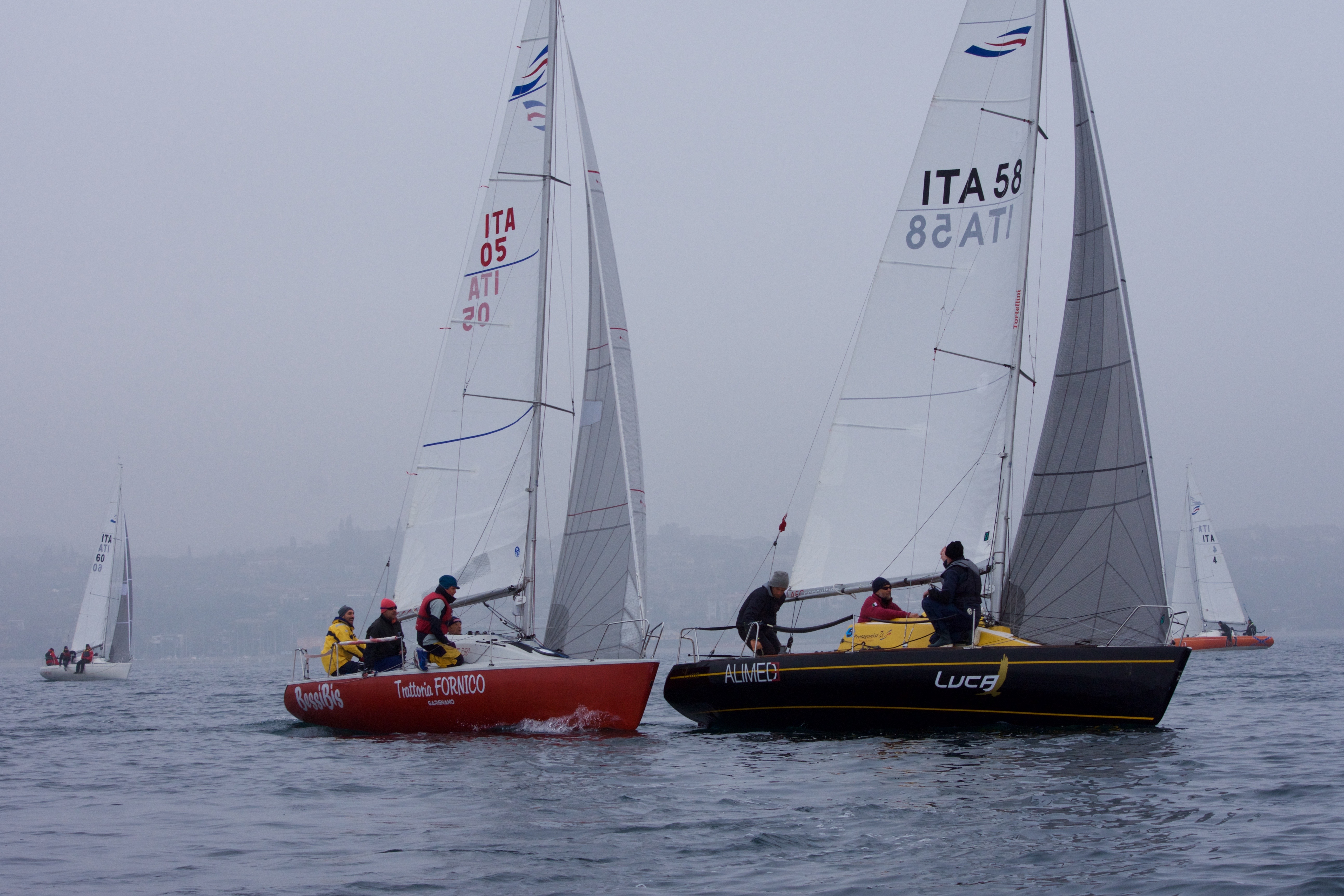 Le condizioni meteo di Sabato si sono presentate molto impegnative fin dalla prima mattinata specialmente per gli equipaggi che hanno dovuto affrontare un Peler molto teso e accompagnato da onda formata, durante il loro trasferimento verso Moniga d/G. Di contro, il riparo naturale fornito dal promontorio di San Sivino concedeva al campo di regata antistante il Porto di Moniga delle condizioni di vento e onda meno “critiche”.