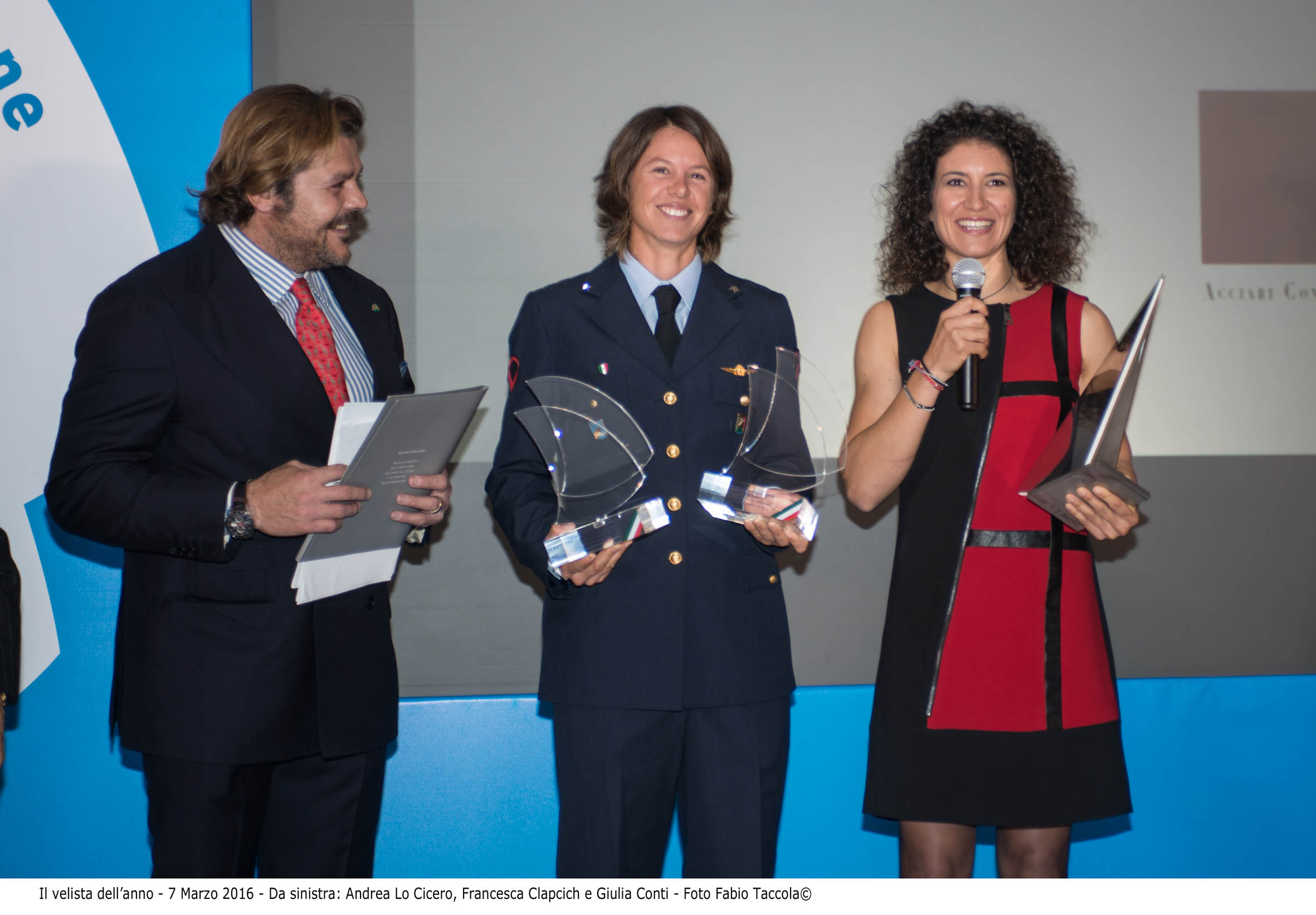 Il premio Velista dell’Anno è stato assegnato a Giulia Conti e Francesca Clapcich per gli straordinari risultati ottenuti nel 2015: una storica “tripletta” con la conquista del titolo italiano, europeo e mondiale nella classe Olimpica 49er FX.