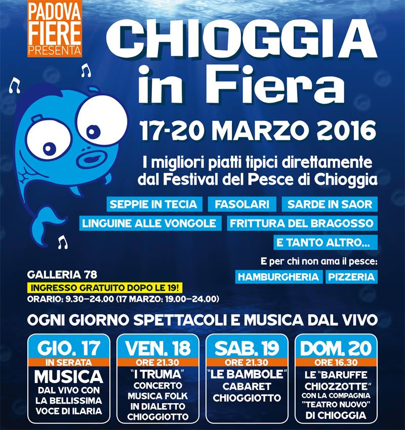 I migliori piatti tipici direttamente dalla Sagra del Pesce di Chioggia, in più ogni giorno spettacoli e musica dal vivo accompagnati dalle bontà che solo il mare può offrire.