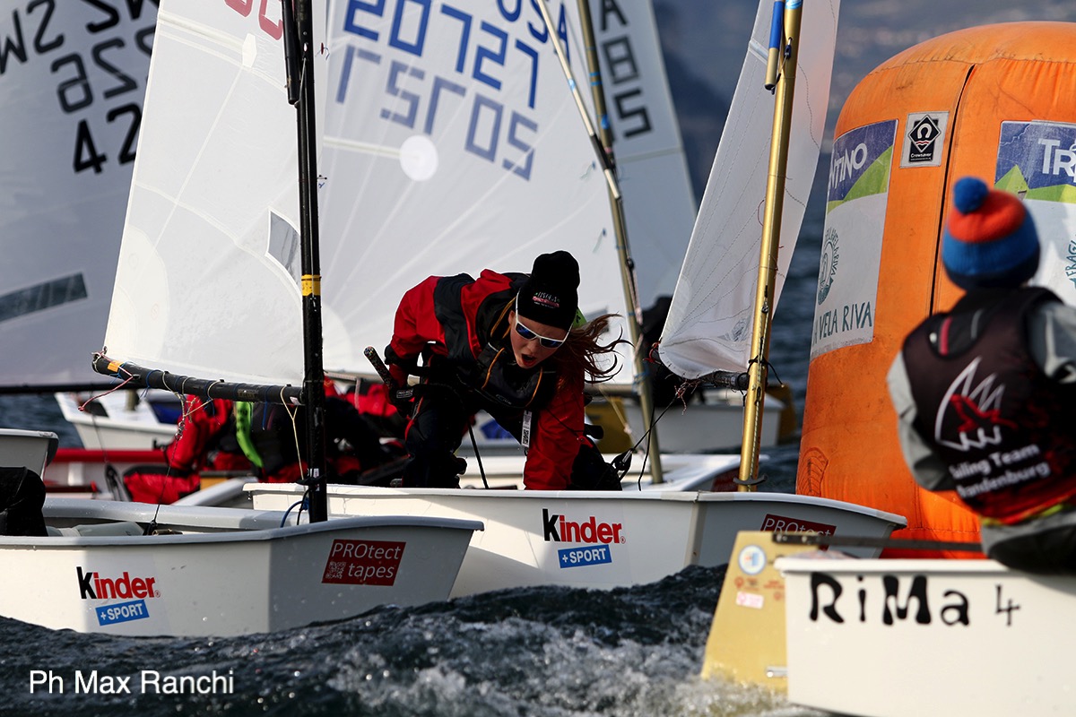 Un grintosissimo Mattia Cesana, portacolori del circolo organizzatore Fraglia Vela Riva, mantiene la testa della classifica combattendo anche oggi con l’amico statunitense (qualche giorno fa è stato fatto un simpatico gemellaggio tra la squadra statunitense e gli atleti della squadra Optimist della Fraglia Vela Riva) Ben Foox, protagonista di due secondi, un primo e un undicesimo (scartato). Ad un solo punto lo svedese Erik Norlèn, seguito in parità dal tedesco Schweckendiek (2-10-2-2). Si conferma una bravissima Agata Scalmazzi (Fraglia Vela Riva) che con il terzo e ottavo odierni passa quinta , prima delle femmine. Nona l’altra italiana (CV Torbole) Giorgia Bonalana, terza femmina.