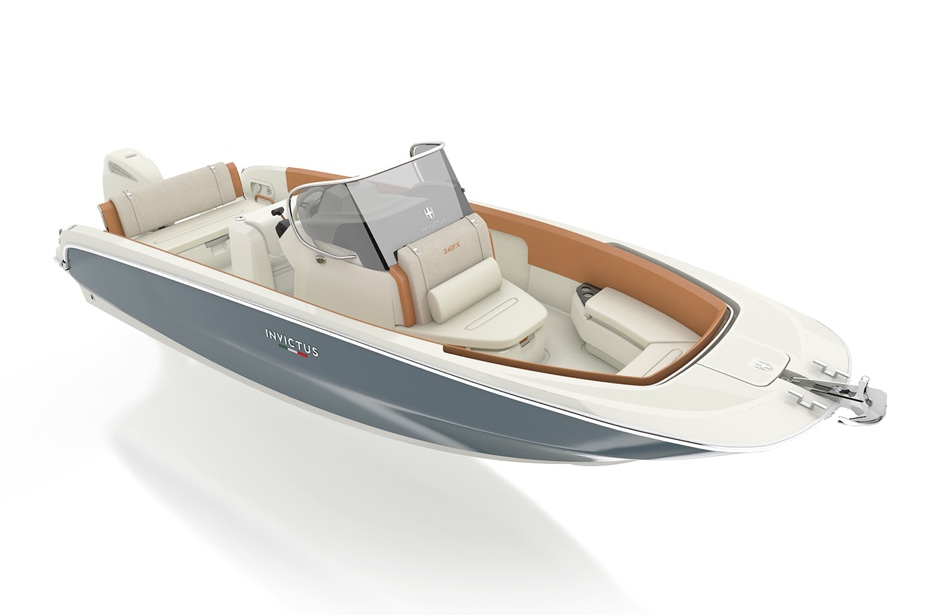 Come sulla 270FX, consolle e posto guida sono studiati nei minimi particolari per essere totalmente integrati e facilmente fruibili. I relativi volumi della 240 FX sono sfruttati per ricavare un piccolo locale spogliatoio sottocoperta, che è possibile equipaggiare con wc. Questo e altri dettagli dimostrano come anche dal punto di vista tecnico questo nuovo modello Invictus Yachts abbia una vocazione polivalente ma un’indole sportiva: la panca di poppa ha schienale basculante e ribaltabile per diventare una comoda superficie prendisole; il volume che integra la panca di guida è dotato di serranda e ospita un contenitore termico appositamente progettato; tutti i volumi di coperta, in ogni caso, sono utilizzati per ricavare spazio utile a riporre attrezzature e il necessario per piacevoli giornate di sport o relax.