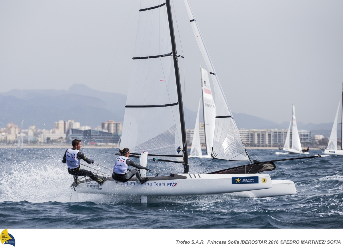 Si chiude con una medaglia d’argento vinta da Flavia Tartaglini nella tavola a vela RS:X e con altri quattro piazzamenti finali in top ten – il quinto posto di Vittorio Bissaro-Silvia Sicouri tra i Nacra 17, il decimo di Jacopo Plazzi-Umberto Molineris nei 49er, il sesto di Daniele Benedetti e il decimo di Mattia Camboni, entrambi nell’RS:X maschile – la trasferta della Squadra Nazionale a Palma di Maiorca, dove oggi, dopo sei spettacolari giornate di vela, è andata in archivio la 47ma edizione del Trofeo Princesa Sofia Iberostar, uno degli appuntamenti clou della stagione europea delle classi olimpiche. Oggi, giornata di Medal Races, le regate finali a punteggio doppio riservate solo ai primi dieci delle classifiche, un bel vento tra i 10 e i 15 nodi d’intensità, molto rafficato e oscillante, ha accolto gli equipaggi impegnati in questo atto finale delle regate di Palma. Una prova sfortunata per Vittorio Bissaro e Silvia Sicouri – i primi a scendere in acqua nella tarda mattinata – che alla vigilia della Medal partivano dalla terza posizione della classifica generale. Purtroppo i due portacolori delle Fiamme Azzurre hanno chiuso la regata in nona posizione e il terzo posto è diventato un quinto, risultato che comunque li conferma stabilmente ai vertici della disciplina del catamarano olimpico.