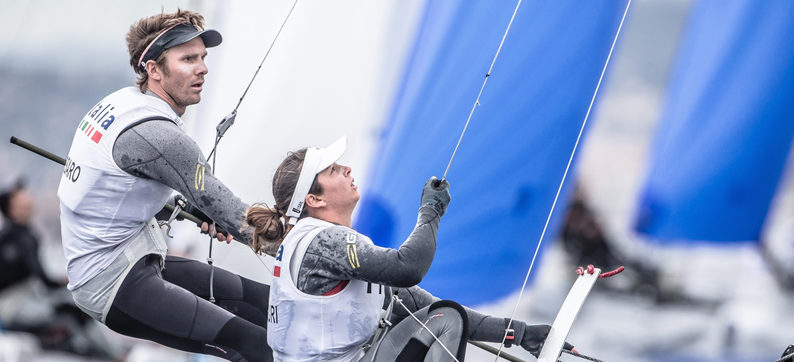 Italiani in evidenza nel doppio acrobatico maschile 49er, grazie a un’ottima giornata di Stefano Cherin e Andrea Tesei che chiudono le due prove di oggi al quarto e al quinto posto, agganciando la 19ma posizione della classifica generale, mentre Luca e Roberto Dubbini sono secondi nella prima regata del giorno (22mi nella generale) e Ruggero Tita e Pietro Zucchetti (oggi 24-13) guadagnano due posti rispetto a ieri e sono 14mi. Nell’ambito del catamarano per equipaggi misti Nacra 17, invece, Vittorio Bissaro e Silvia Sicouri chiudono la giornata con un 14-3-6-3 come score e risalgono fino alla terza posizione di una classifica totalmente rivoluzionata rispetto a ieri. Da segnalare, sempre tra i Nacra 17, le ottime prestazioni dei giovanissimi Gianluigi Ugolini e Maria Giubilei, quindicesimi nella generale con un bel 4-6 nelle ultime due regate del giorno, e di Lorenzo Bressani e Caterina Banti, al momento 16mi con un secondo parziale nella terza prova odierna.