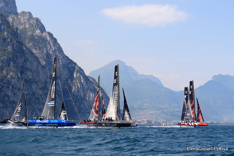 A qualche giorno dalla conclusione della GC32 Riva Cup ecco un primo bilancio dell’evento, che tra tutte le regate organizzate alla Fraglia Vela Riva e forse su tutto l’Alto Garda insieme al Meeting del Garda Optimist, è l’unica che ha saputo richiamare l’attenzione e la presenza di persone non necessariamente appassionate di vela, arrivate sul lago per gustarsi lo spettacolo. Vedere questi catamarani volanti dai sentieri o dalle strade che fungono da tribuna naturale con vista sul campo di regata, ha affascinato anche chi non si è mai fermato ad osservare una barca, un windsurf. La velocità, che ha toccato quasi i 40 nodi, il volo nelle andature di traverso e lasco, non hanno eguali nei confronti di altre imbarcazioni. E dalle immagini montate nell’ultimo video riassuntivo si può notare che non è una “corsa ai cavalli” su chi va più veloce, ma una vera e propria regata, con tattiche, precedenze, incroci come tutte le altre regate, ma a velocità pazzesche. Anche alla Fraglia Vela Riva alla vigilia c’era molta attesa, essendo la prima volta al mondo che ben 9 scafi foil di queste dimensioni (32 piedi) e così performanti regatavano tutti insieme in un luogo ventoso, abbastanza limitato nello spazio e invaso da windsurf, barche di ogni genere o kite nella zona più a sud. Il coordinamento tra club, classe Gc32, Comitato di Regata e Giuria, Polizia e Croce Rossa, oltre alla capacità dei timonieri di livello a dir poco stellare (5 medaglie olimpiche e una decina i velisti in Coppa America) ha permesso che lo spettacolo fosse tale, con il campo di regata libero da ogni mezzo, e quindi in sicurezza.