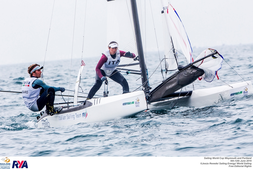 I due atleti delle Fiamme Azzurre hanno condotto una settimana molto solida nonostante le insidie del campo di regata di Weymouth e Portland, che ha inaspettatamente regalato giornate di poco vento alternando sole, nebbia e pioggia e mettendo a dura prova gli organizzatori. In sesta posizione dopo il primo giorno di regate, Vittorio e Silvia hanno pazientemente risalito la classifica fino a guadagnarsi la pettorina rossa del terzo per la medal race. I conti nella regata finale erano impossibili da fare: troppi equipaggi in troppi pochi punti; un quarto posto infatti non è bastato a rimanere sul podio.