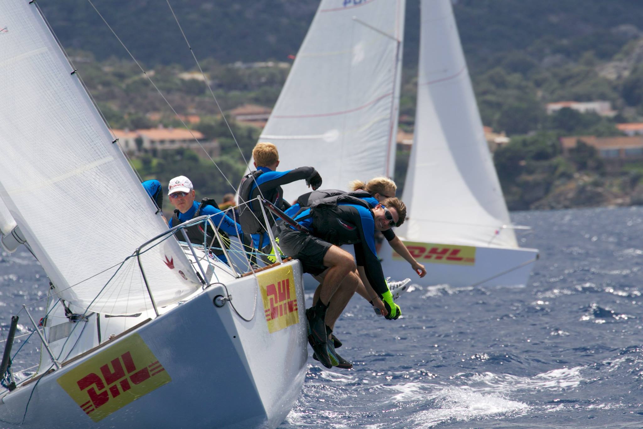 La flotta Este 24 ha chiuso la seconda giornata di regate di questo Campionato Nazionale DHL Trophy con altre tre prove disputate in un crescendo di agonismo e condizioni meteo che hanno regalato grandi emozioni ai team partecipanti, rientrati a terra soddisfatti e appagati della bellissima giornata di vela. La coppia Ravioli-Petricone ha contenuto l’avanzare di RiDeCoSì di Alessandro M. Rinaldi, coadiuvato alla tattica da Stefano Cherin, che ha chiuso la giornata con uno score da leader, un quarto un primo ed un secondo posto, scartando un sesto. Sestelemento è riuscito a calibrare al meglio le proprie prestazioni risalendo sino alla terza piazza in classifica generale. Perde un posto TALJ di Vittorio Ruggiero che scarta un quattordicesimo nella seconda prova di giornata. UNIVPM Ancona di Smerchinich Alessandro risale la china con un primo posto nell’ultima regata, prova che ha segnato le condizioni meteo più impegnative, raffiche fino a 20 nodi proprio nell’ultimo lato di poppa. Piccola Peste torna in acqua dopo il forzato ritiro di ieri per la rottura del timone e piazza un primo un settimo ed un terzo posto, un vero peccato per la giornata di ieri per i ragazzi capitanati da Davide Capriata. Da segnalare anche il ritiro di Ricca D’Este per la rottura di una crocetta.