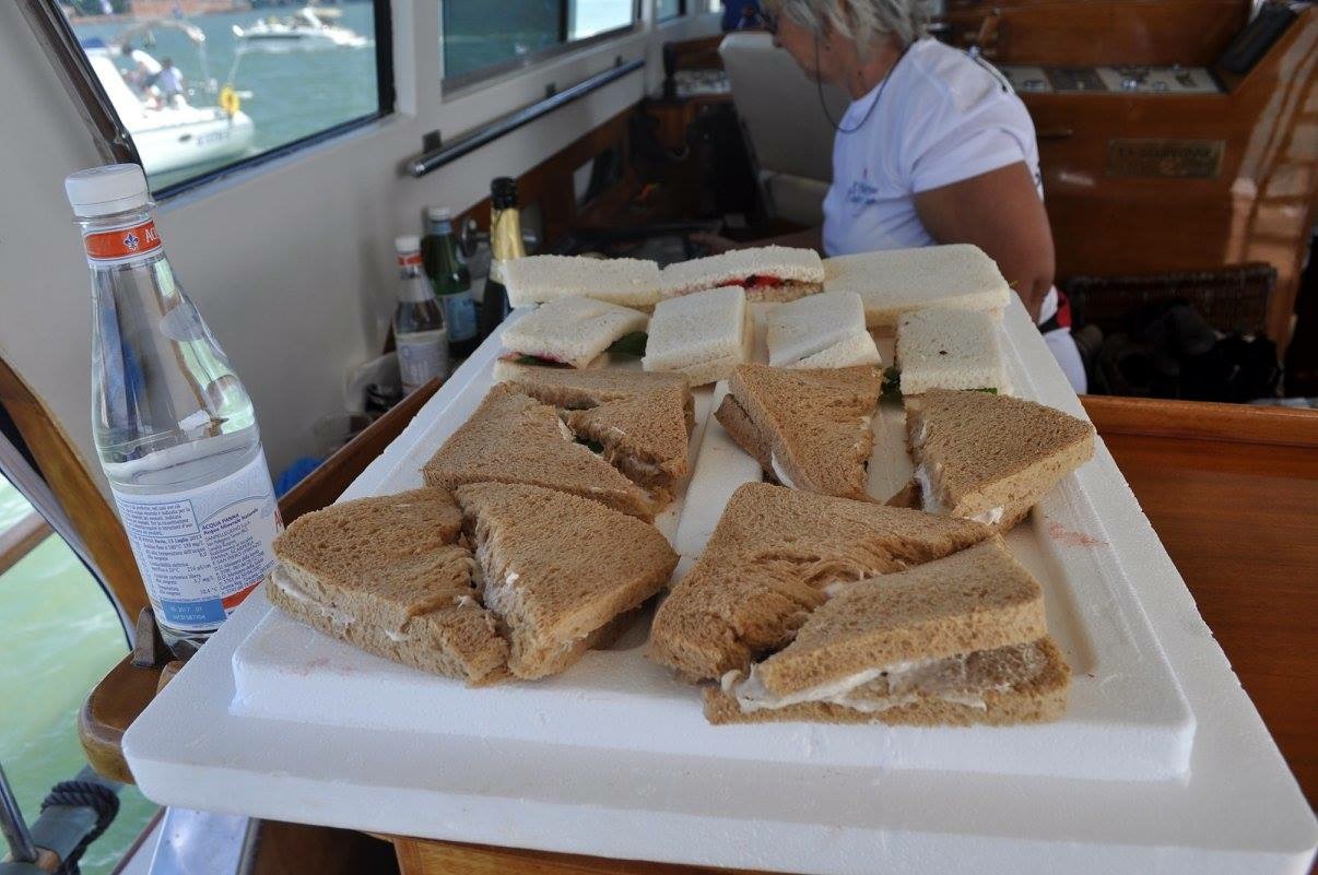 Quest’anno a giudicare le creazioni culinarie a bordo (la scelta era tra un antipasto, un primo o un secondo abbinati ad un vino) c’erano Roberto Leonardi del Team Venezia Chef, Claudio De Min giornalista esperto di enogastronomia, Fausto Arrighi, ex curatore della Guida Michelin e critico enogastronomico tra i più noti in Italia. E ancora Ottavio Missoni Junior, che oltre al cibo ha scelto il miglior abbigliamento degli equipaggi e, infine, la chef stellata di casa nostra Mara Martin, del ristorante osteria Da Fiore.
