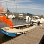 Nel corso dell’esercitazione si è simulato l’incendio a bordo di un’unità da diporto di 7 metri, con ferito a bordo e sversamento di sostanze inquinanti in acqua.