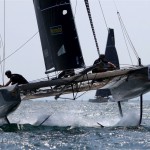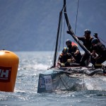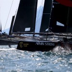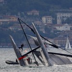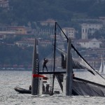 Momenti di adrenalina quando il catamarano Malizia dello skipper Pierre Casiraghi ha scuffiato coinvolgendo anche il gommone media con a bordo il noto fotografo Carlo Borlenghi