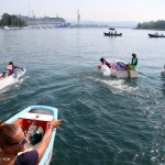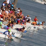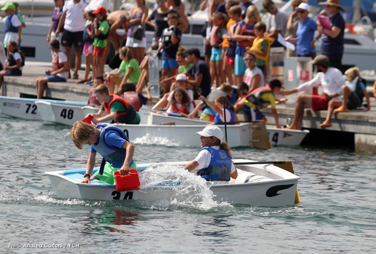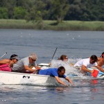 Sabato lo staff SVTN ha preparato per i partecipanti un’appassionante gara di “vogata in Optimist” a squadre. Gli scafi sono stati preparati senza vele per due membri di equipaggio: un ragazzo al timone e uno munito di sassola, che dovevano vogare nel bacino di Panzano fino all’arrivo presso il gommone della scuola. La gara è stata resa più impegnativa con una staffetta che prevedeva sia un cambio equipaggio con i ragazzi, sia la gara per istruttori e allenatori, dove nonsono mancate le capriole!