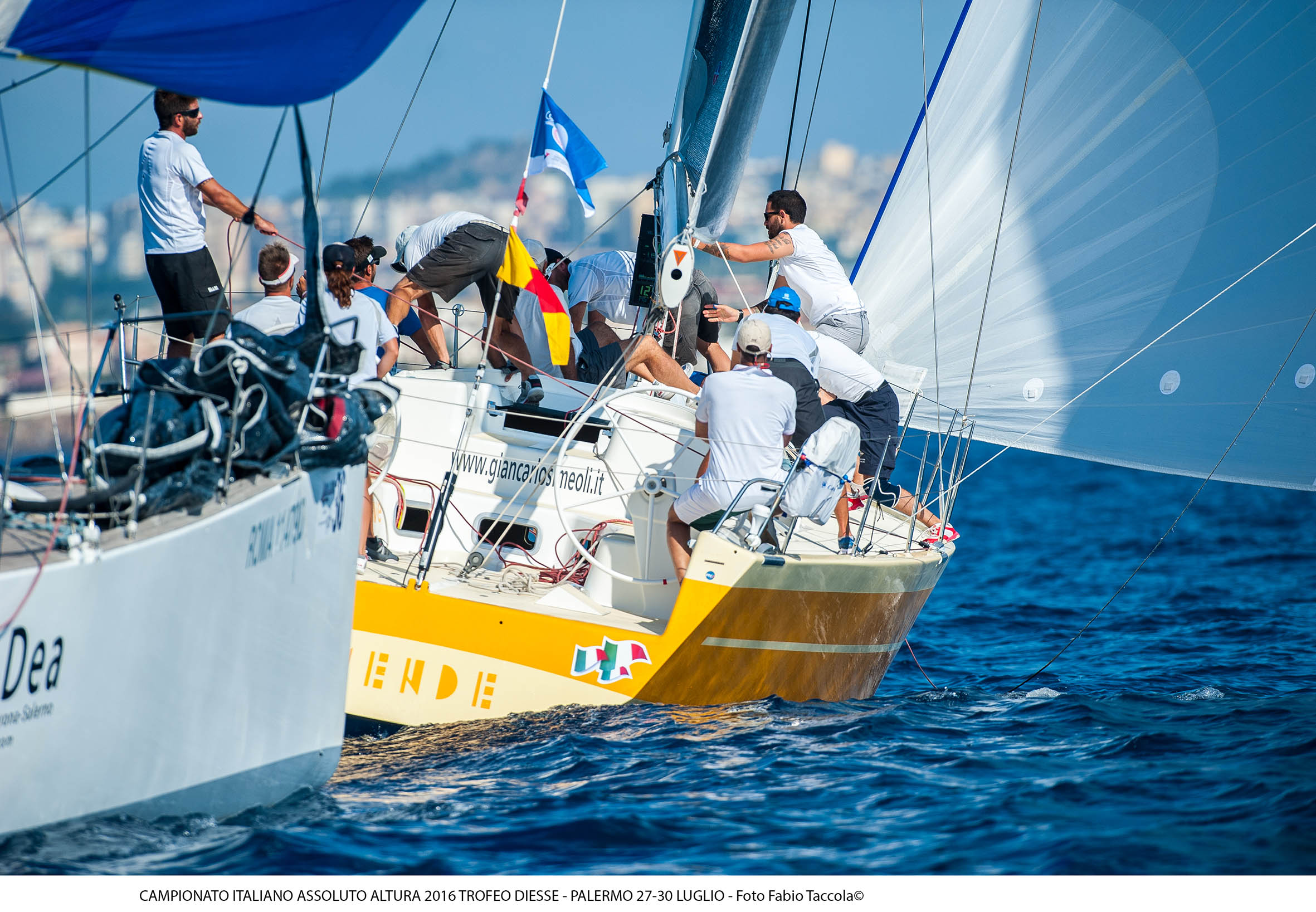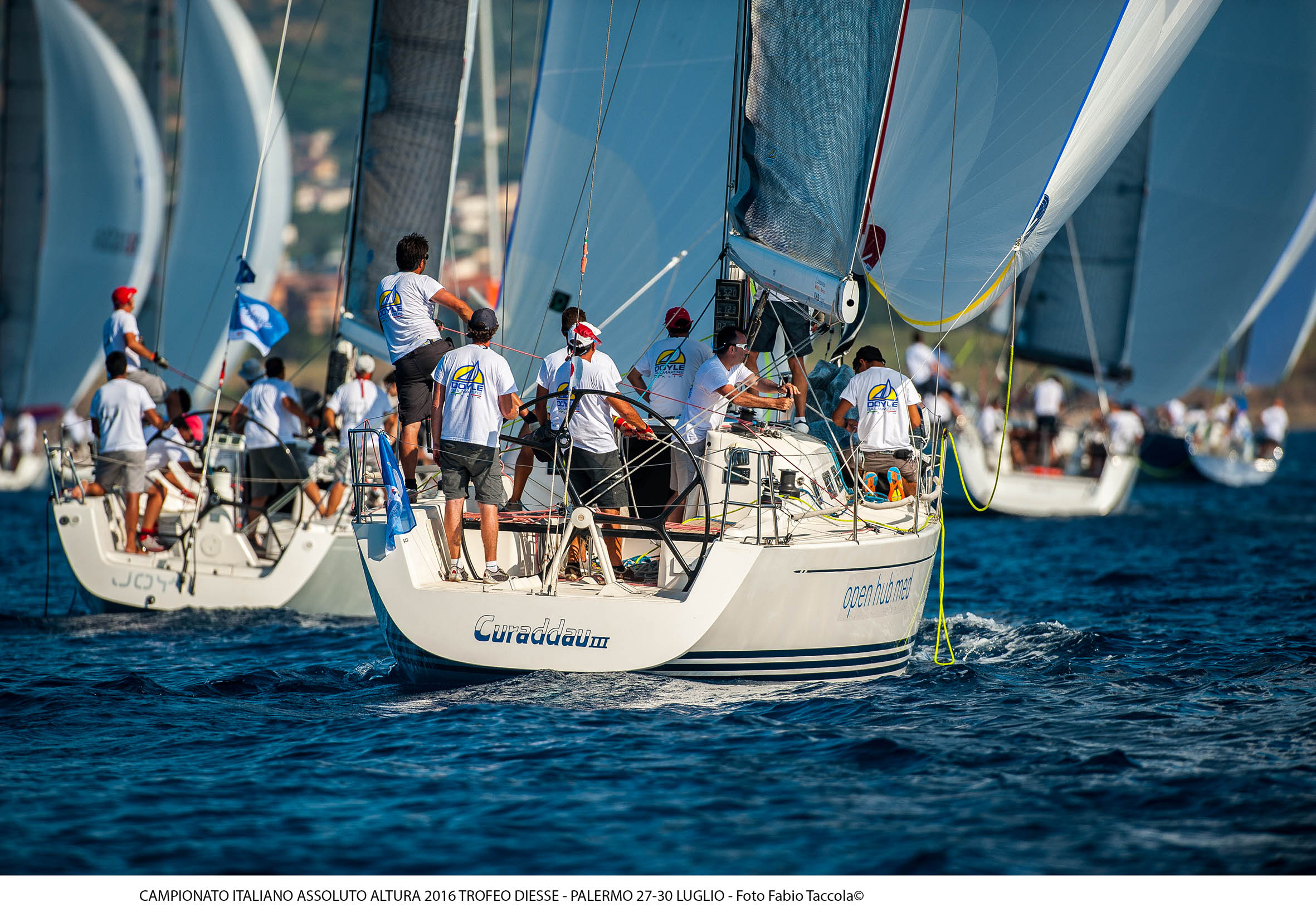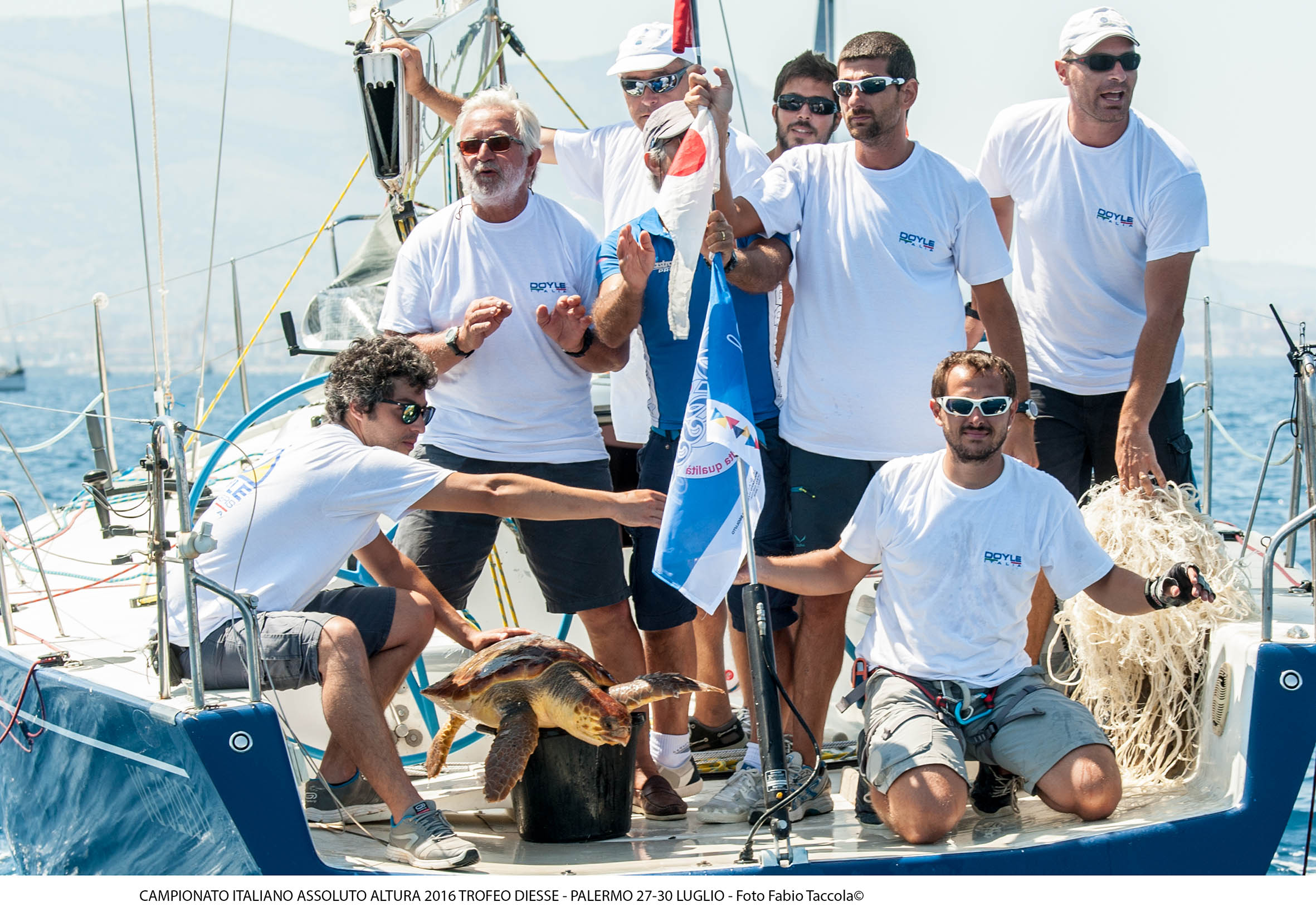 Il mare di Palermo si è animato di vele, per l’avvio del Campionato Italiano Assoluto Vela d’Altura Trofeo Diesse. Programma rispettato: grazie a una giornata di sole e vento leggero ma costante sui 6-8 nodi da Nord-Nord Est, il Comitato di Regata guidato da Alfredo Ricci ha potuto svolgere due regate. Uscite dal porto alle 12, le 70 barche del campionato (record storico di partecipazione all’evento) sono rientrate alla base, nel porticciolo de La Cala, solo alle 18. Sei ore di mare, di regate, manovre e caccia al titolo italiano. Le regate sono state ben visibili dal lungomare palermitano. Un equipaggio ha salvato una tartaruga marina trovata in mare in difficoltà impigliata in una rete.