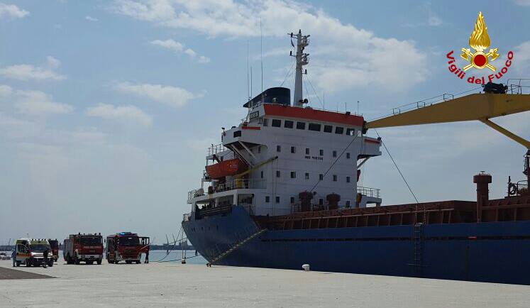 Questa mattina poco dopo mezzogiorno una nave ha preso fuoco mentre stava uscendo dal porto di Chioggia, zona Val da Rio.