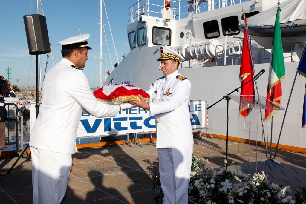 La cerimonia ufficiale di consegna si è svolta al porto di Albarella (Rovigo) alla presenza dell’ammiraglio Abderraouf Atallah, capo di Stato maggiore della Marina tunisina, e del contrammiraglio Marcello Bernard, in rappresentanza dello Stato maggiore della Marina italiana, e del contrammiraglio Giuseppe Abbamonte, capo del III Reparto Navarm-Ministero della Difesa. Ad accogliere le autorità Luigi Duò, presidente del Cantiere Navale Vittoria.