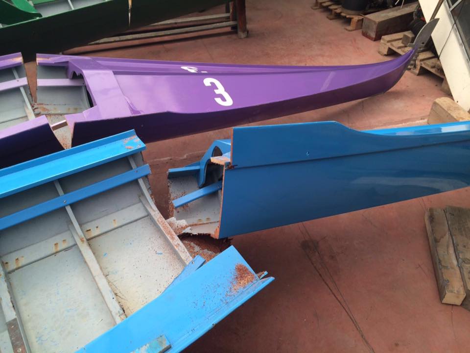 Questa notte, nel cantiere di Malamocco, ignoti hanno danneggiato i 7 gondolini che il Comune di Venezia mette a disposizione per le regate.