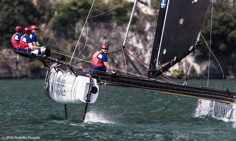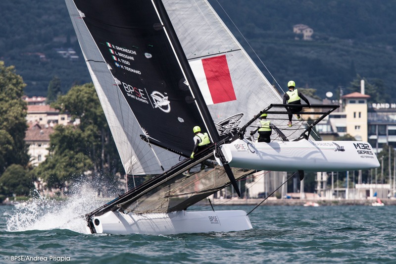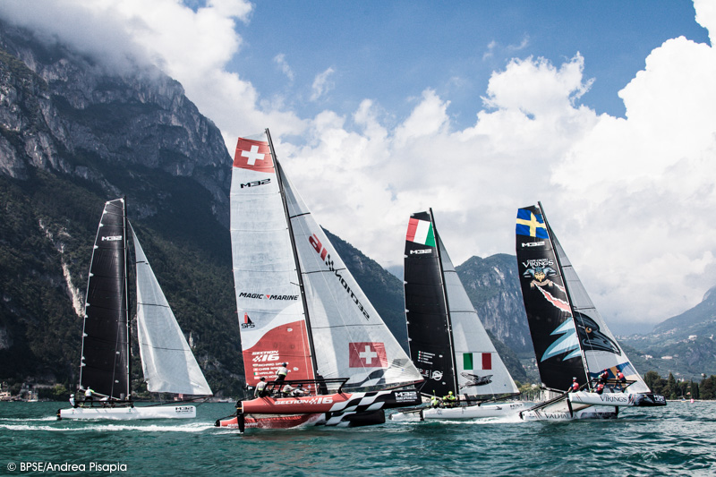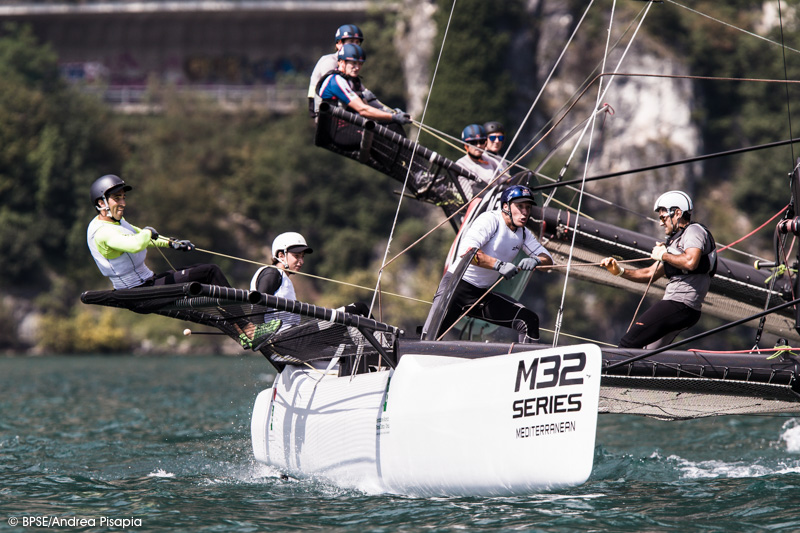 Sole e vento nell’ultima giornata delle M32 Series Mediterranean a Riva del Garda hanno concesso di disputare ben otto prove con Ora (la brezza termica da sud del lago di Garda, ndr) ben stesa sui 10 nodi. Molti gli avvicendamenti in testa alle prove, che alla fine hanno visto FFC con Jacopo Plazzi, Umberto Molineris, Francesco Bianchi e Lorenzo Bianchini spuntarla sulle altre imbarcazioni. Secondi Italia Sailing Team di Riccardo Simoneschi con Lorenzo Bressani, terzi Vikings (SWE) di Håkan Svensson e quarti gli svizzeri di Section 16 di Richard Davies.