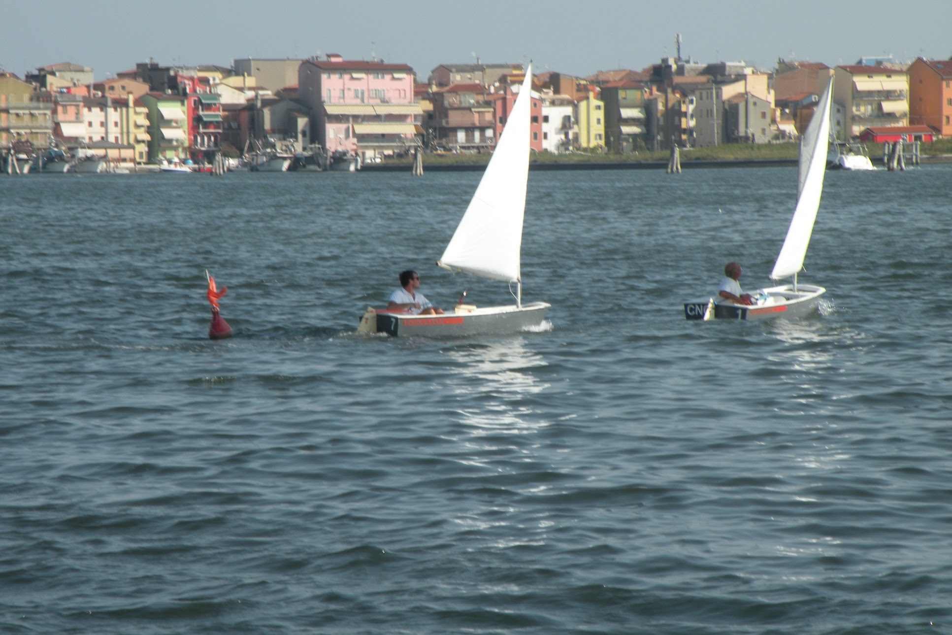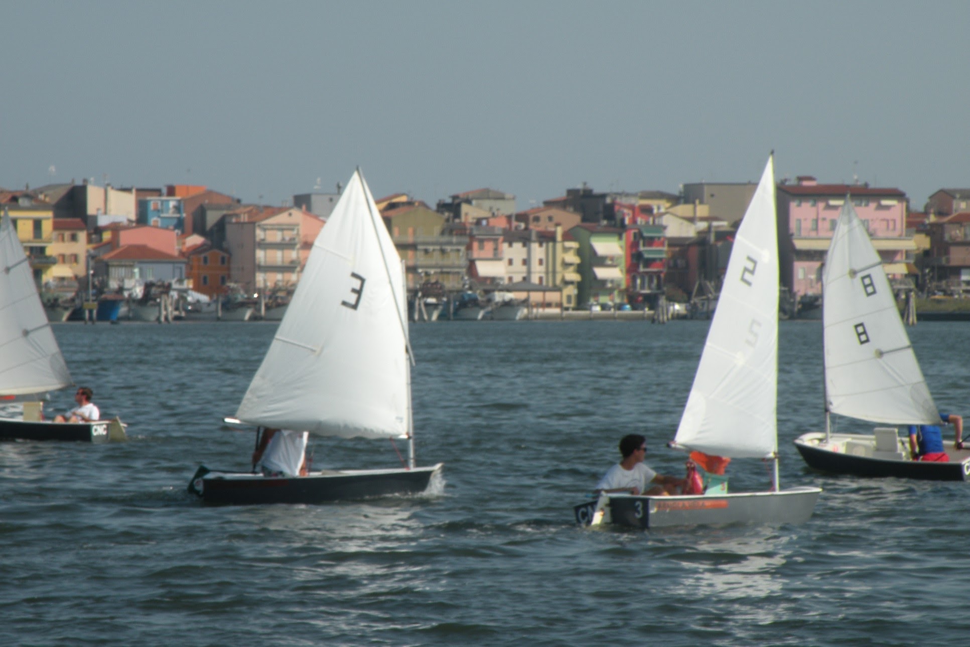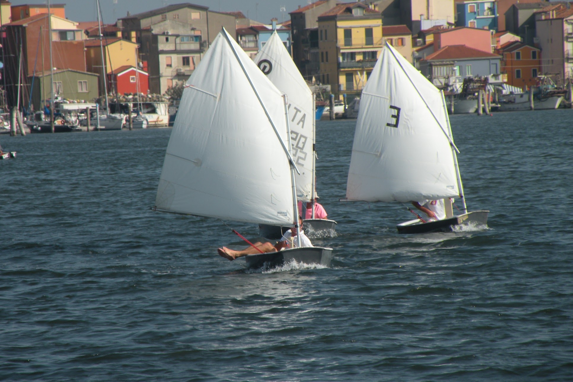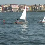 Con un buon scirocco sui 7/8 nodi prendeva il via la regata della prima batteria subito molto combattuta, al primo giro di boa Massimo Zambonin era tallonato da Corrado Perini e Raffaella Polello con un buon vantaggio sugli inseguitori, nella poppa allungava Raffaella che però con un giro di boa “generoso” lasciava spazio a Massimo e Corrado che si infilavano di nuovo al comando, nella seconda bolina dal gruppo degli inseguitori usciva Tom Stahl che con un bordeggio più attento riusciva a prendere il comando su Massimo, Raffaella e Corrado ancora tutti molto vicini ma era Raffaella, imprendibile in poppa, ad allungare per la vittoria finale con la Gold Fleet conquistata anche da Tom Stahl, Massimo Zambonin e Corrado Perini.