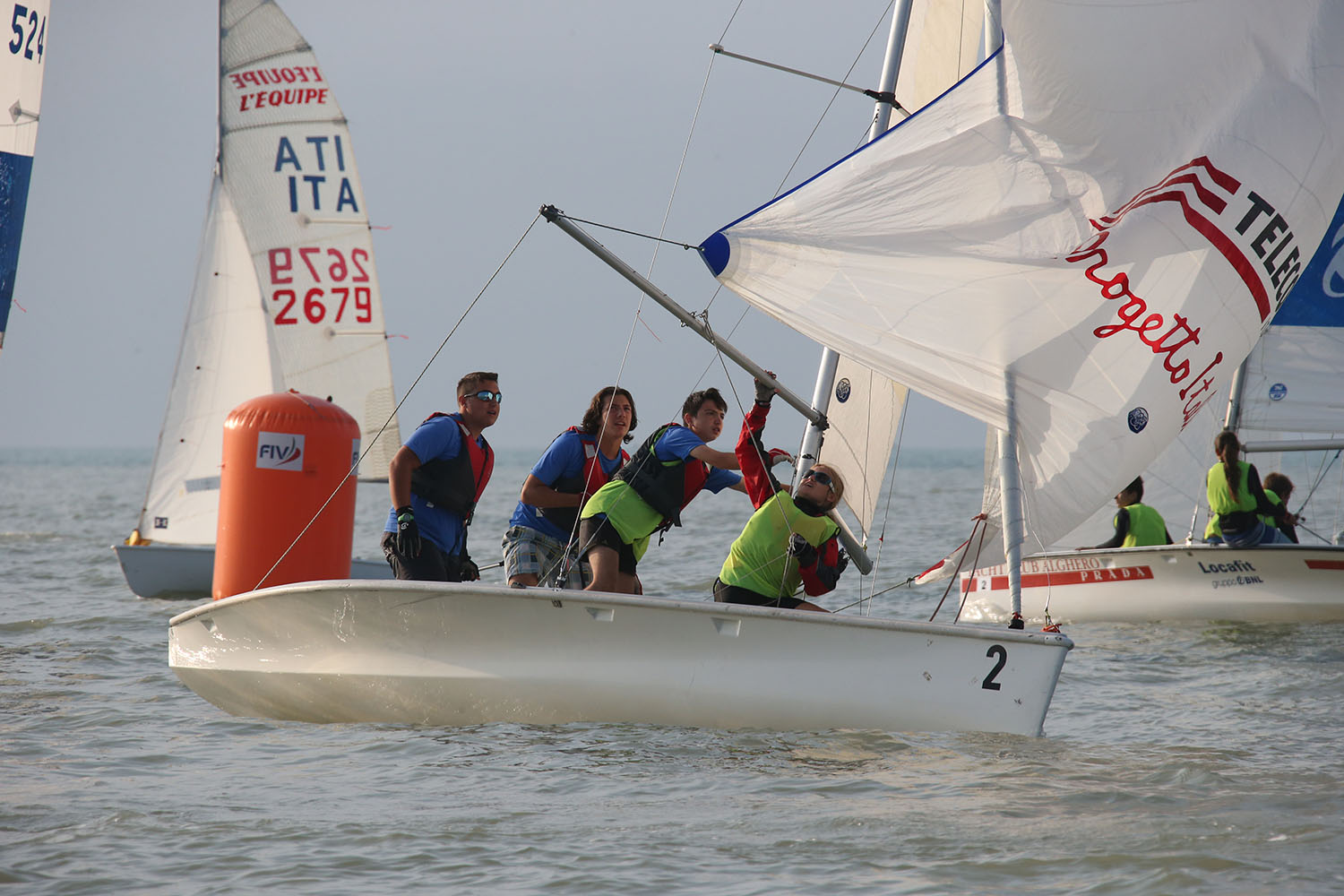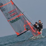 Prime a partire sul campo 2 le classi RS Feva e L’Equipe EV, che alle 15:30 hanno concluso la prima prova, mentre i primi dei 555FIV erano in prossimità della linea d’arrivo. Contemporaneamente chiudevano la prima regata i catamarani e i 29er sul campo 3, mentre sul campo 1 i 420 erano impegnati nell’ultima poppa, con vento in calo e rotazione a Ovest. Conclusa la prima prova, su tutti i campi il vento girato a Sud e la mancanza di pressione ha costretto i Comitati a tenere tutti in attesa. Dopo oltre 30 minuti solo sul campo due è stata data una seconda partenza per le classi RS Feva, L’Equipe EV e i 555FIV, mentre alle 17:50 tutte le altre classi sono state fatte rientrare a terra.