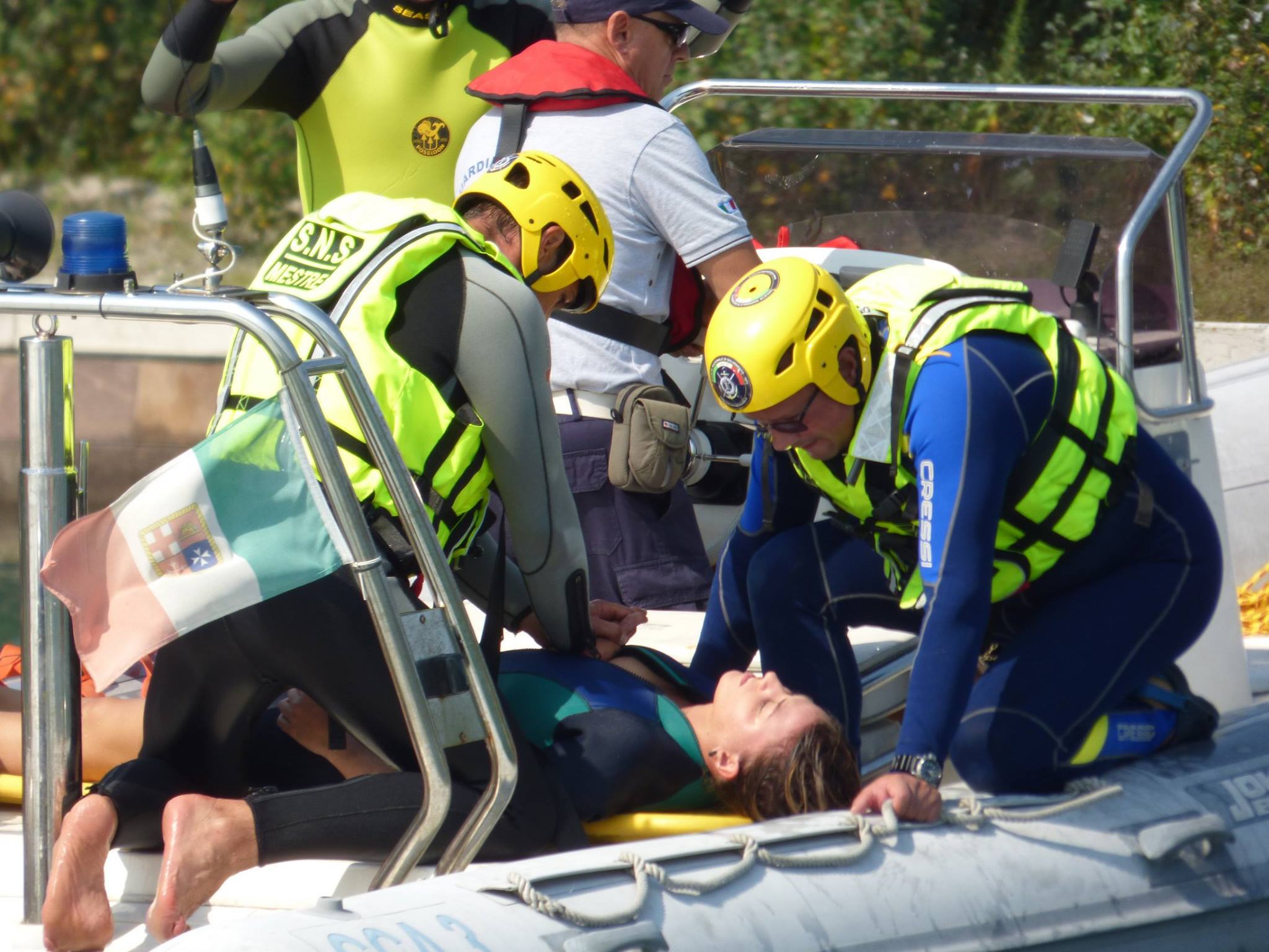 Si è svolta sabato 10 settembre presso l’Isola della Certosa una interessante e ben organizzata esercitazione di soccorso che ha visto coinvolti gli operatori della Guardia Costiera Ausiliaria, dei volontari della Croce Rossa e quelli dei cani di salvataggio mettendo in rilievo una ottima dimostrazione di coordinamento e preparazione.