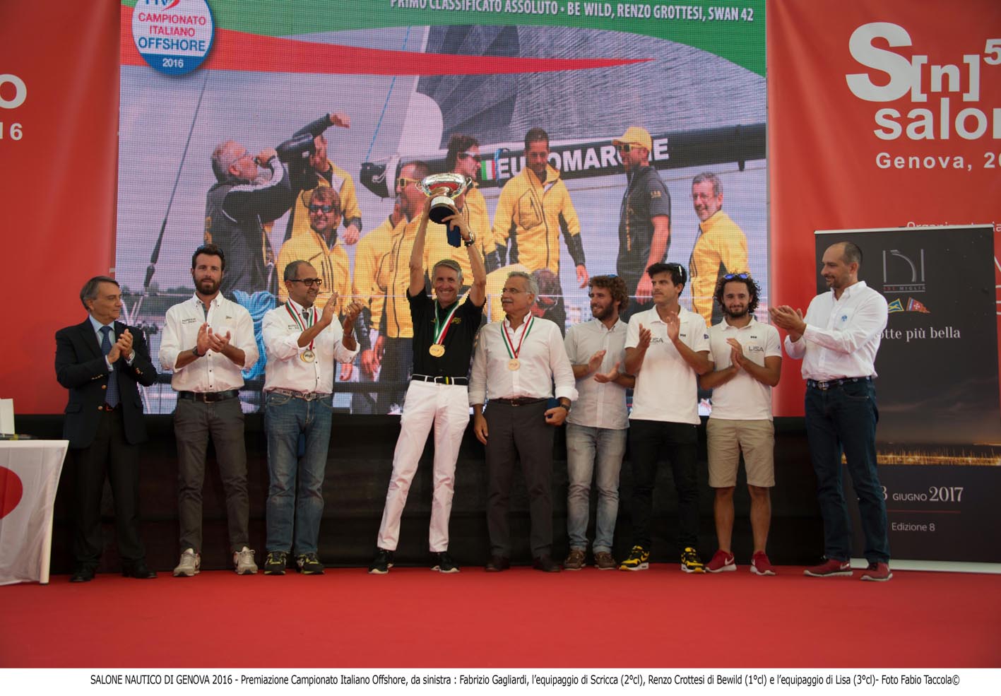 La premiazione del Campionato Italiano Offshore è stata il culmine di una giornata dedicata alla vela d’altura, con una serie di eventi di scena al Teatro del Mare – dalla presentazione del Campionato Mondiale ORC 2017 di Trieste, della nota regata 151 Miglia e della Regata delle Torri Saracene, entrambe tappa del circuito dell’Italiano Offshore, alla premiazione del Trofeo Arcipelago Toscano 2016 – che hanno coinvolto molti appassionati giunti appositamente alla Fiera di Genova.
