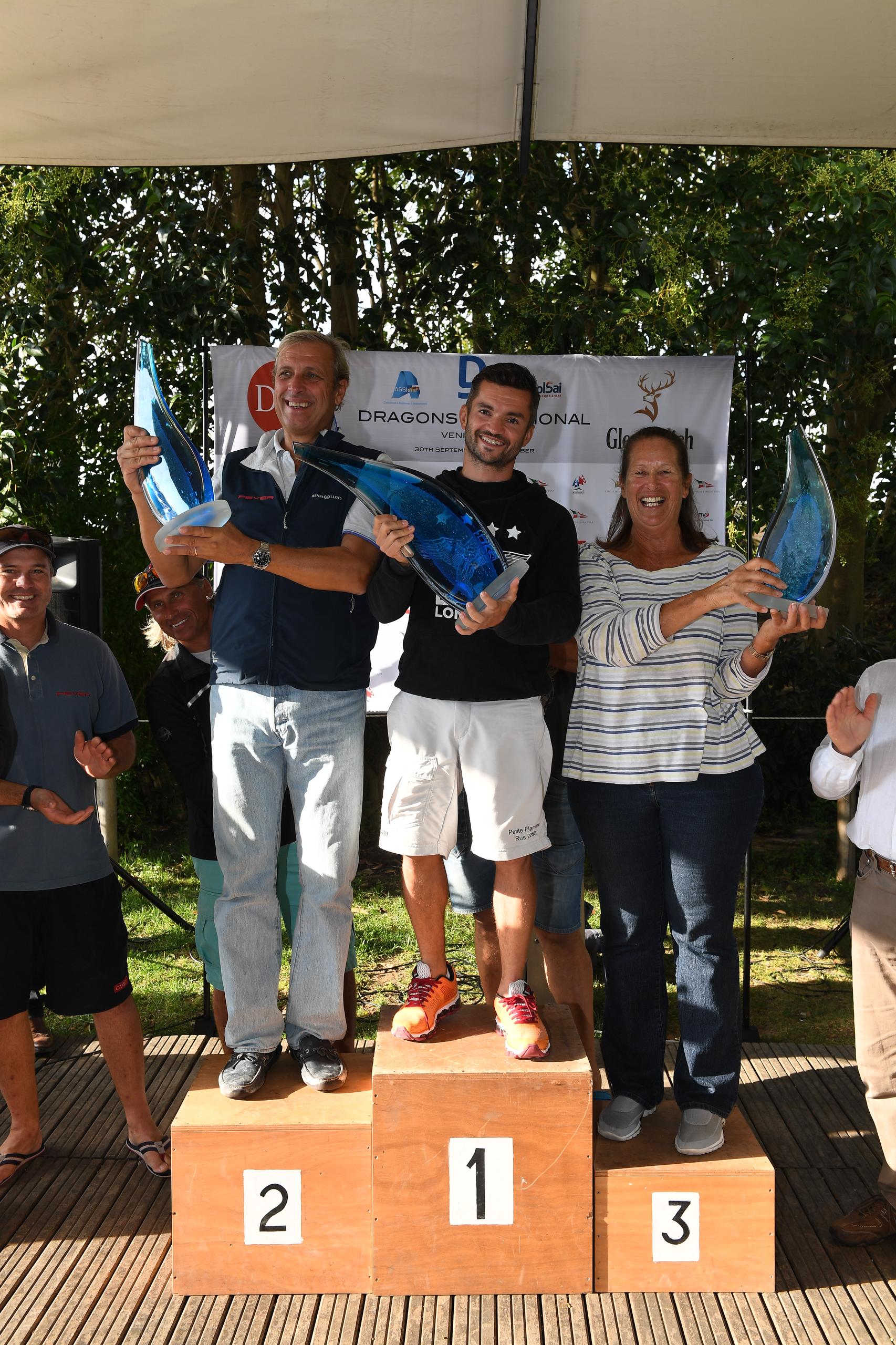 Dopo un testa a testa in classifica fra il team “Fever”, equipaggio d’eccellenza con al timone Klaus Diederichs – campione del mondo 2013 classe Dragoni e Diego Negri – campione olimpico e vice campione mondiale della classe Star, team “Jerboa”, timonato da Gavia Wilkinson-Cox, unica donna a guidare un dragone e “RUS 76” di Dmitri Samokhin, (sesto posto della classifica mondiale), il meraviglioso trofeo in vetro di Murano creato da Linea Murano Art se lo è aggiudicato il team “RUS 76”.Al secondo posto l’equipaggio Fever e poi Jerboa. Al quarto posto Beppe Duca portacolori della Compagnia della Vela.