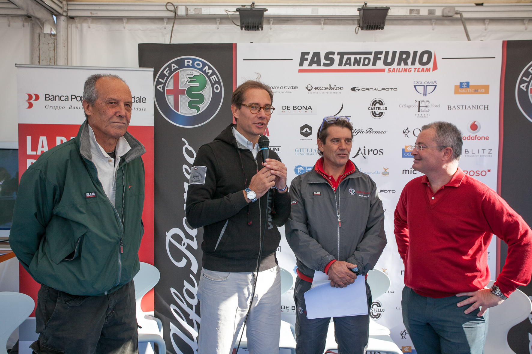 Il Fast and Furio Sailing Team sbarca sulle Rive: dopo 1.100 miglia di navigazione il Maxi 72 che ha al suo attivo un lungo palmares di vittorie tra Mediterraneo e l’Atlantico – tra cui il prestigioso riconoscimento di Boat of the Year dell’International Maxi Association nel 2013 – è stato ormeggiato davanti a Piazza Unità. Tanti i triestini a bordo, coordinati dal team manager e timoniere Furio Benussi, tra questi il navigatore Andrea Visentini, profondo conoscitore dell’imbarcazione, e l’ex Luna Rossa Giulio Giovannella a prua. A salutare il Fast and Furio Sailing Team sono arrivate le parole di Piero Napp, primo vincitore della Barcolana nel 1969, mentre lontano dai riflettori del centro città si è svolta la presentazione dell’equipaggio di Maxi Jena, dal 2002 – anno del suo varo – protagonista della Barcolana con otto secondi posti e la vittoria del 2009. Al timone ci sarà Mitja Kosmina, coadiuvato in pozzetto dal finnista sloveno Gasper Vincec, dal chioggiotto Enrico Zennaro e dal progettista Andrej Justin.
