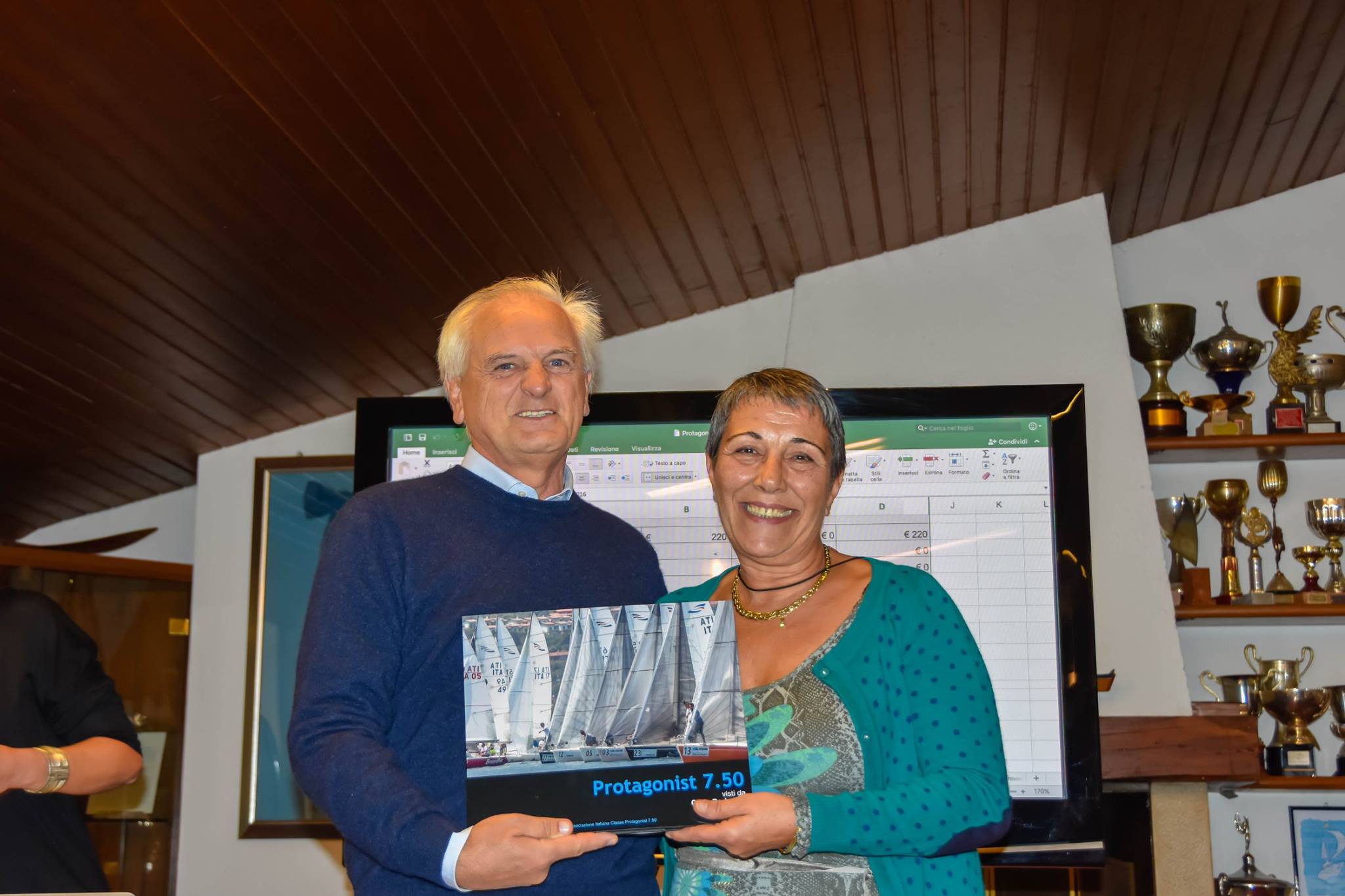 L’assemblea è stata anche l’occasione per presentare il libro fotografico “Protagonist 7.50 visti da Carlo Borlenghi”, nato dall’incontro della classe con il grande fotografo di vela in occasione del campionato di Limone. La presidente Marina Guerra, a nome di tutta la Classe, ha donato la prima copia del volume a Luciano Galloni, tra gli ideatori del monotipo progettato da Luigi Badinelli. Il libro è in vendita nel negozio online di Blurb.com.