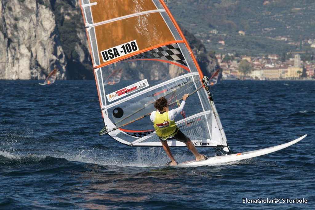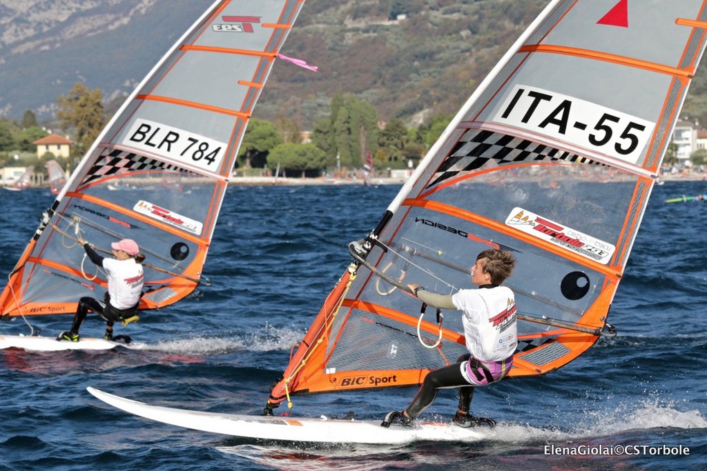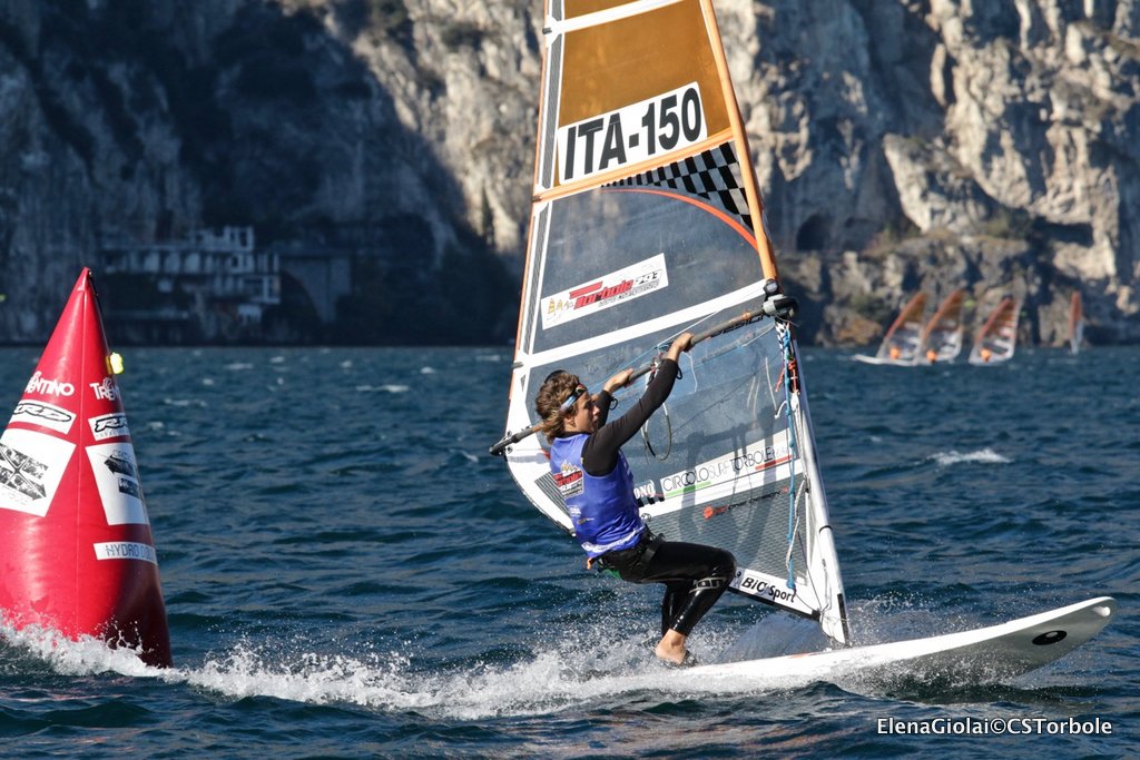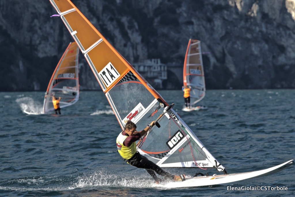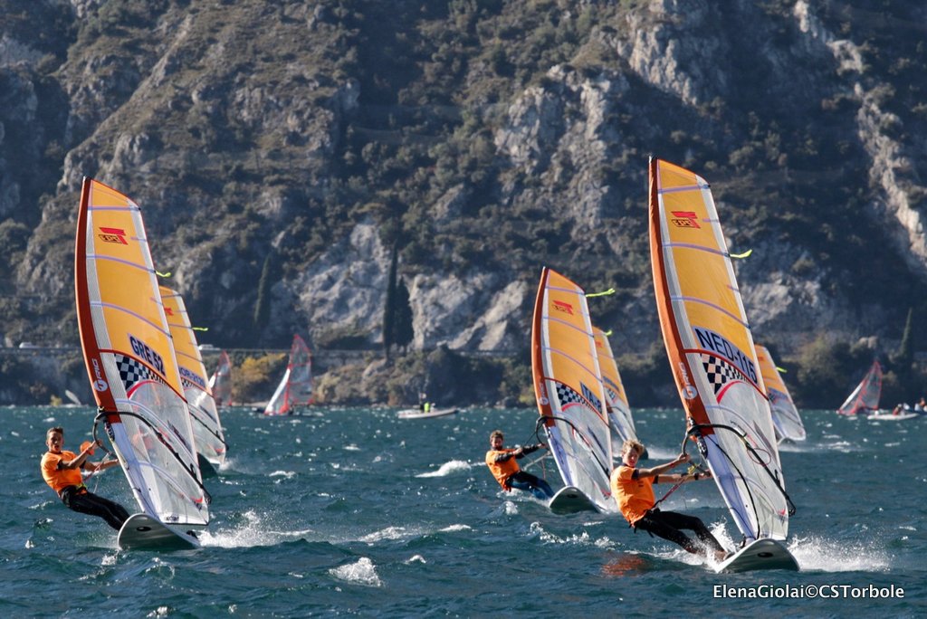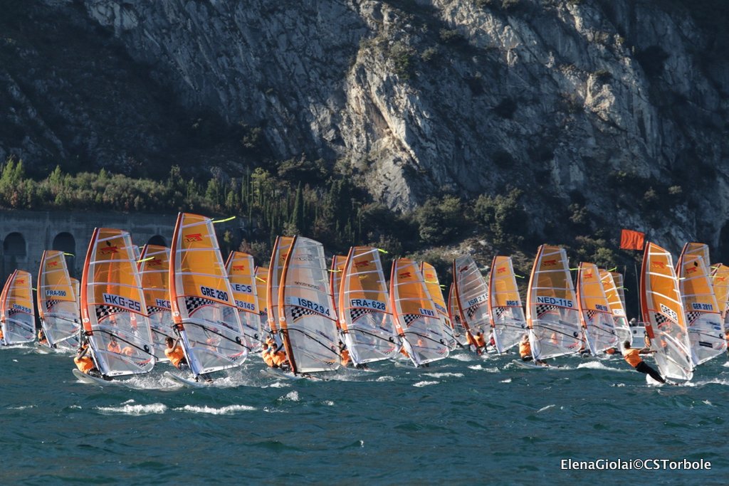 Ma il Garda Trentino non per niente viene chiamato “la macchina del vento”: verso le 13 ha cominciato a soffiare un vento da sud piuttosto deciso per la stagione e tutta l’organizzazione gestita dal Circolo Surf Torbole in collaborazione con la Classe Internazionale Techno 293 è ripresa a ritmi serrati con registrazione dei regatanti prima dell’uscita, Campo di Regata posizionato per il vento da sud, Comitato di Regata con staff partenze e arrivi pronto, Giuria e Segreteria del Circolo attivi per far girare tutto al meglio. Una volta posizionati i due campi di regata è iniziato il susseguirsi di partenze, dando priorità alle Gold fleet per poi proseguire con le silver di tutte le categorie in gara Under 17, Under 15 e Plus maschili e femminili.