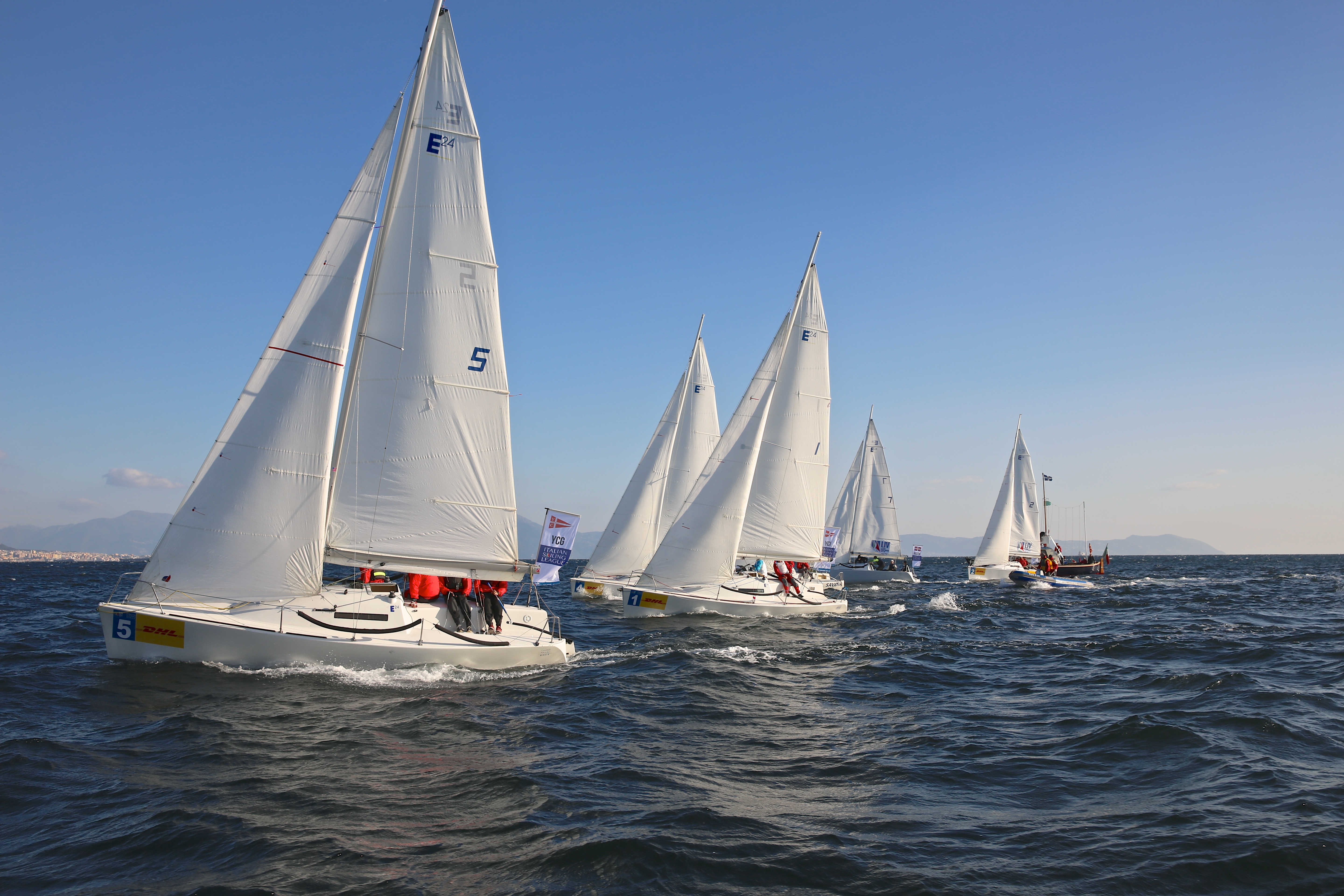 Il Golfo di Napoli ha accolto con oltre 30 nodi di Grecale gli equipaggi in gara nella Finale della Lega Italiana Vela – Campionato Nazionale per Club organizzato assieme all’official partner Banca Aletti e il supporto di DHL e ICS – Istituto per il Credito Sportivo. Dopo il solenne alzabandiera, svoltosi stamani nella sede del circolo organizzatore, il Reale Yacht Club Canottieri Savoia, Umpires e Comitato di Regata hanno avviato le procedure di partenza della prima delle 45 prove in programma a bordo dei monotipi Este24, ma il vento, alzatosi fino a 38 nodi, non ha permesso di concludere la regata d’esordio. Si è dovuto attendere fino al primo pomeriggio, quando il vento si è assestato a poco meno di 30 nodi, per poter tornare a regatare a pochi passi da terra, in uno scenario unico, ai piedi del Castel dell’Ovo.