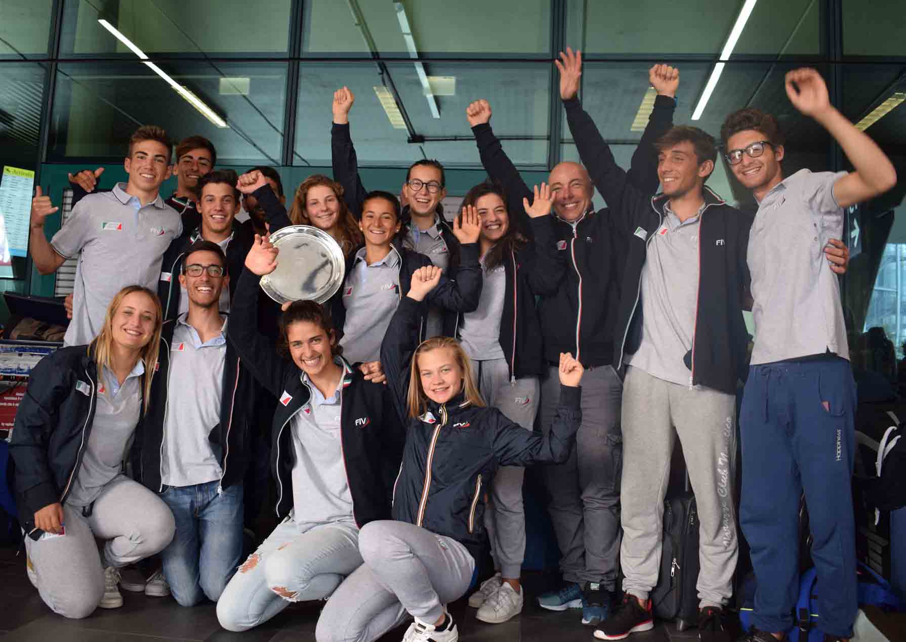 La Nazionale Italiana Giovanile è rientrata oggi in Italia da Auckland, in Nuova Zelanda, dove martedì, ai Mondiali di vela Under 19, aveva conquistato l’importante Nations Trophy 2016, l’ambito titolo iridato a squadre, oltre a tre medaglie individuali: l’argento con Alexandra Stalder e Silvia Speri (CN Bardolino-FV Peschiera) nel Doppio 420 Femminile e con Paolo Giargia (Varazze CN) nel Singolo Laser Radial Maschile, il bronzo con Carolina Albano (CV Muggia) nel Singolo Laser Radial Femminile. Gli azzurri sono atterrati oggi a Fiumicino (Roma), all’Aeroporto Leonardo da Vinci, intorno alle ore 13, accolti da un gruppo di tifosi e dalle famiglie. Assente il Direttore Tecnico della giovanile Alessandra Sensini, il cui rientro in Italia è previsto nei prossimi giorni.