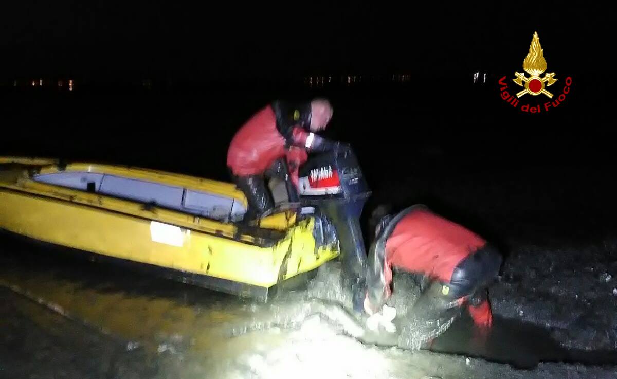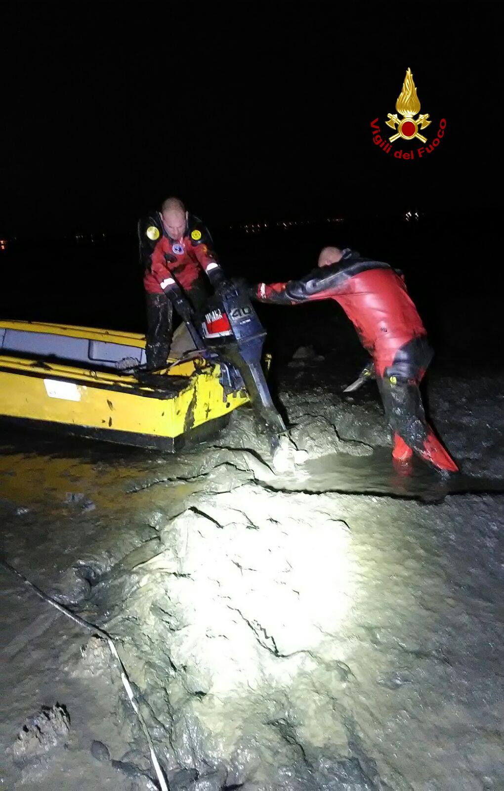 Salvataggio per l’equipaggio dell’elicottero Drago 81 del reparto volo dei Vigili del fuoco di Venezia intervenuti nel pomeriggio per portare in salvo due donne arenatesi con una barca a Fusina in una seccaV. Alle ore 15.30 la chiamata di soccorso alla sala operativa del 115 di due donne rimaste incagliate con una piccola imbarcazione nella laguna a Fusina nei pressi del “lago del Duro”. Le donne dopo essersi arenate e tentato di disincagliare inutilmente la barca, bagnandosi, hanno dato l’allarme. Sul luogo si è portato l’elicottero Drago 81 che ha recuperato le due donne che sono state verricellate a bordo per essere sbarcate in terra ferma. Nel frattempo sul posto anche un’imbarcazione di dei pompieri di Mira che insieme con i sommozzatori hanno operato per il recupero della barca.
