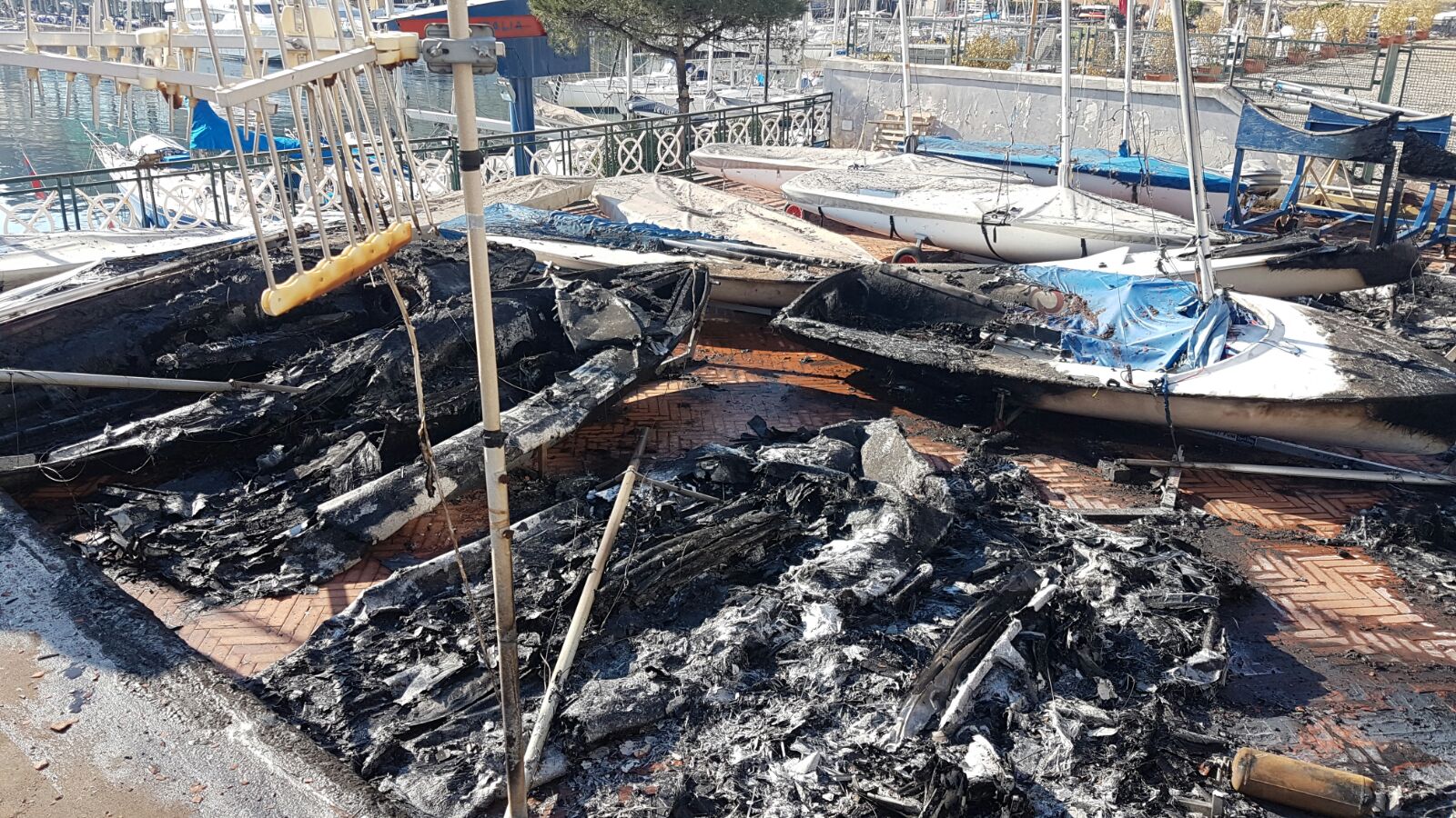 Circa 20 imbarcazioni completamente ridotte a cenere tra Laser, 420, Optimist, 470 e Dinghy, e nonostante lo sforzo di un socio che per primo ha chiamato i soccorsi, i Vigili del Fuoco hanno raggiunto Via Partenope con difficoltà ed in ritardo per la presenza delle migliaia di persone che festeggiavano il Capodanno sul Lungomare e delle installazioni dei new jersey antiterrorismo.