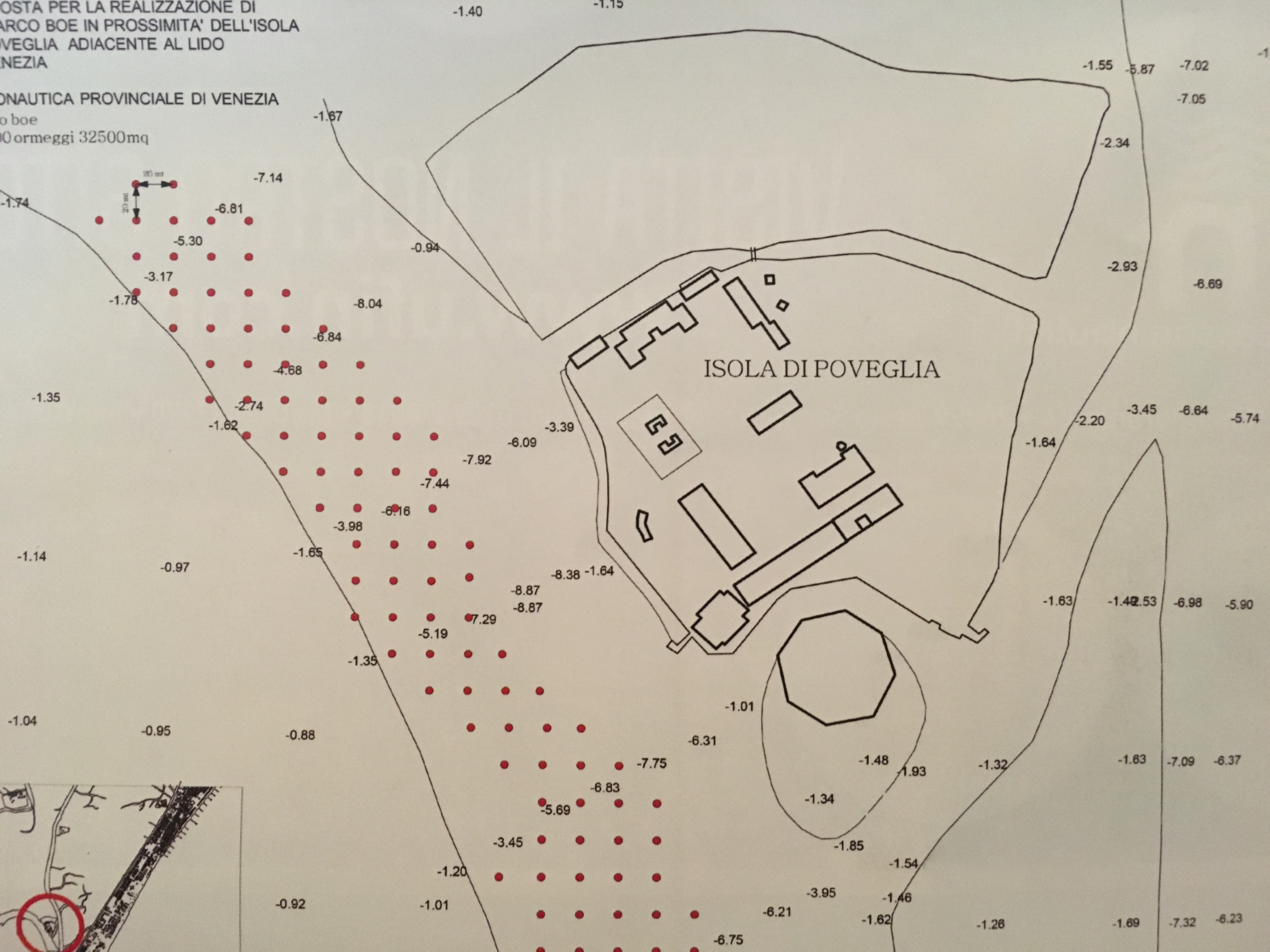 “La nostra idea – continua Roberto Magliocco – è di realizzare un parco boe fornito di servizi come il ritiro spazzature e la navetta con il Lido e con Piazza San Marco. Un progetto che regolerebbe l’oggi anarchica situazione che si viene a creare a fianco di Poveglia quando decine di barche si ancorano senza alcuna organizzazione, ed incentiverebbe allo stesso tempo la sosta per quelle barche che sono troppo impattanti per girare nei canali veneziani. “
