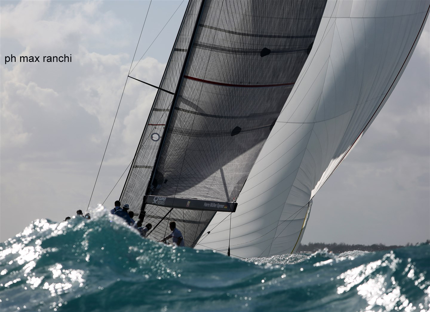 Vento teso anche per la prima giornata di regate della seconda tappa delle 52 SUPER SERIES, la Miami Royal Cup si presenta con delle condizioni meteo intense. Due partenze per saggiare lo stato di forma e rimpiazzare per così dire la giornata di prova, la flotta da subito spettacolo, questo specchio d’acqua regala sempre qualcosa di emozionale per la flotta e per chi vede queste regate. Fa colpo la nuova grafica di Sorcha, un total black molto accattivante, nell’azzurro di Miami poi. Bando alleciance, dopo le due partenze arriva il primo start ufficiale, boa di bolina a 115° di direzione ed un vento intorno ai 16 nodi, 2 miglia la lunghezza del lato. Quantum, Azzurra e Platoon, questo il copione che viene messo in scena per la prima manche di questa seconda tappa. C’è onda fastidiosa, “choppy” da queste parti, la flotta è ben compressa, il terzetto che domina va spedito alla boa. Azzurra si presenta davanti a tutti, Quantum e Platoon seguono, lo spettacolo non manca, è battaglia tra Quantum ed Azzurra, testa a testa tra Terry Hutchinson e Vasco Vascotto, tattica alla stato puro. Al passaggio della terza boa, gli americani sono davanti ad Azzurra e Platoon. Non c’è un attimo di calma in questo triplice confronto tra le due barche che “vestono” vele Quantum e Azzurra, una vera battaglia tra Parada e Bora Gulari, alla fine è l’americano ad avere la meglio. Ottimo terzo posto per Platoon, Rán Racing, Provezza, Sled, Gladiator, Alegre, Sorcha e Bronenosec, con evidenti problemi tecnici, in forse anche la loro presenza alla seconda manche di giornata.