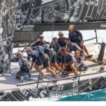 La quarta giornata di regata a Miami sembra la fotocopia della giornata di ieri, poco vento, anzi pochissimo, l’attesa a terra è snervante per una situazione meteo non molto favorevole, l’intelligenza rimane “issata” per un bel pò. Alle 13.00 la bandiera viene ammainata e i team lasciano l’ormeggio, c’è la possibilità che succeda qualcosa, le previsioni parlano di leggero aumento. Alle 14.05 arriva il warning per i team, vento da 125 gradi con un percorso di 1.45 miglia per lato, ready to start! Lentamente la flotta parte, addirittura ci sono tre OCS, tra questi c’è Quantum, Azzurra ottima in mezzo alla flotta. Azzurra e Provezza vanno a sinistra, Platoon al centro. Azzurra gira in testa alla boa di bolina, Sorcha è seconda, Platoon terzo, seguono Bronenosec, Provezza, Gladiator, Sled, Quantum che precipita, Rán Racing, e Alegre. Azzurra continua nella sua cavalcata, davanti a Platoon e Sorcha, Quantum scivola in ultima posizione, gli accorgimenti che Vascotto aveva annunciato per le condizioni di vento leggero, sembrano aver successo. Azzurra va in controllo al centro del campo di regata, sono i segnali di un grande stato di forma da parte di tutto il team. Alla seconda bolina, Azzurra gira davanti a Bronenosec e Platoon, ottimo lavoro per la barca russa, Quantum recupera una posizione. Una regata da incorniciare per Azzurra che guadagna ancora punti sugli inseguitore con questa terza vittoria di tappa, che consistenza. Bronenosec recupara una posizione, Platoon è l’unico a tenere, si fa per dire, il passo di Azzurra. Sprofonda Quantum, il campione in carica nelle acque di casa paga forse lo scotto di un timoniere neofita per questa classe. Azzurra abbatte il record dello scorso anno di Quantum che in 6 regate totalizzò 10 punti, Azzurra, solo 9.