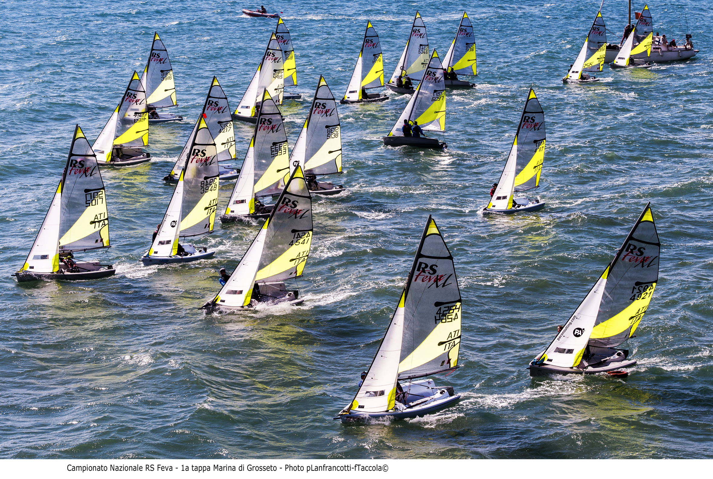 Condizioni impegnative a Marina di Grosseto per la prima regata nazionale della classe giovanile RS Feva: 16-18 nodi di scirocco e onda non hanno certo facilitato la vita ai nuovi equipaggi che proprio in questa prima regata 2017 erano al loro esordio! I più inesperti sono rimasti a terra, mentre hanno preso il mare una ventina di equipaggi che hanno dato spettacolo in 3 bellissime regate. La manifestazione, organizzata dalla Compagnia della Vela di Grosseto, ha quindi rispettato il programma di giornata portando a termine tutte e tre le prove previste: in testa l’equipaggio del Circolo Nautico Brenzone con al timone Nicolò Forasacco con alla prua Stefano Drago, nettamente primi con due secondi e un primo. A seguire, con 7 punti di distacco Asia Poni del Circolo Nautico Savio (4-3-5), mentre occupa la terza posizione provvisoria l’altro equipaggio ravennate (CN Savio) timonato da Tobia Torroni. Protagonisti di ben due primi e un diciannovesimo Sofia Colledan ed Elena De Luca che domani con l’inserimento dello scarto dopo la quarta prova dovrebbero fare un balzo in avanti in classifica.