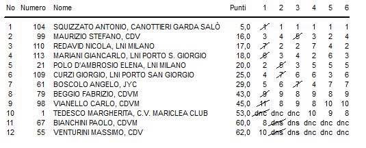 Dominatore assoluto, come detto, Antonio Squizzato (campione paralimpico, campione italiano 2017 e medaglia d’argento settimana scorsa alla coppa del mondo di Hyeres) che ha vinto il trofeo davanti a Stefano Maurizio della Compagnia della Vela e Nivola Redavid della Lega Navale Milano.