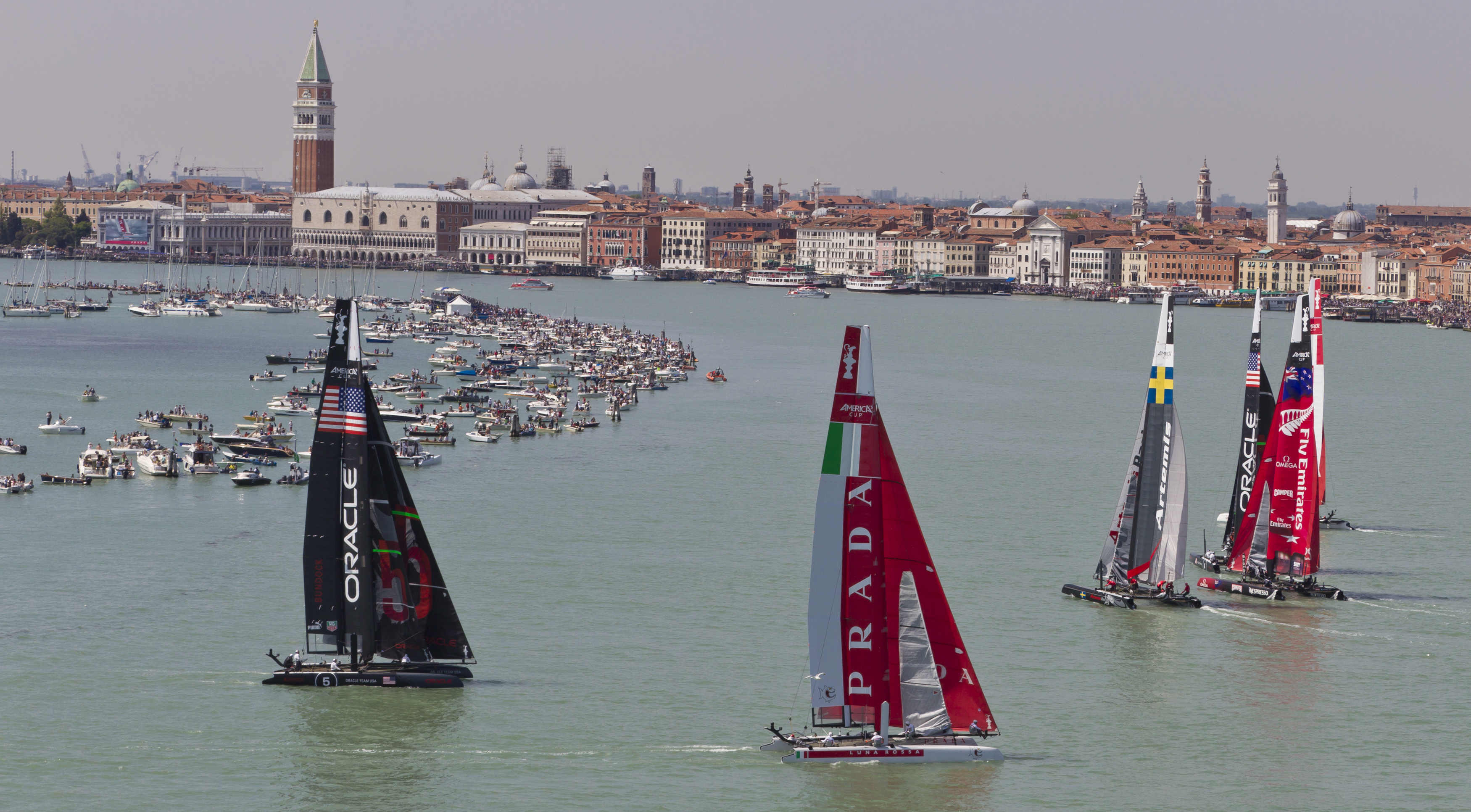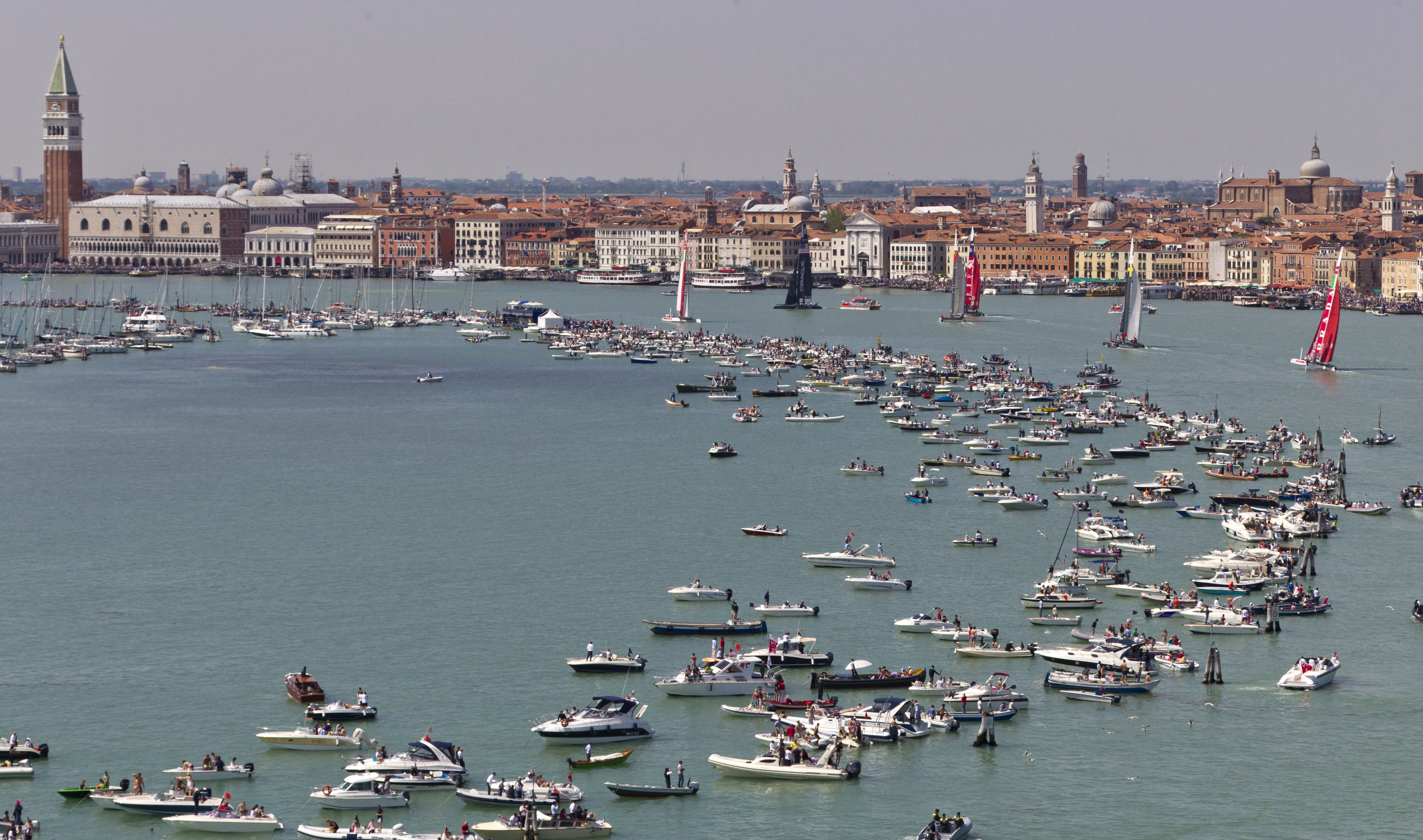 La base logistica della Coppa America fù l’Arsenale, l’antico deposito navale edificato nel 1100, e il campo di regata tra gli stabilimenti dell’Hotel De Bains e la Bocca di Porto del Lido: 10 gli equipaggi in gara, 30 le regate in programma, al ritmo di tre al giorno. Successo anche in termini di pubbico, con oltre 100mila persone nella sola giornata conclusiva, assiepate sulle rive vogliose di far parte di questa grande festa 50 mila gli spettatori attesi che potranno seguire la competizione da diversi punti di osservazione