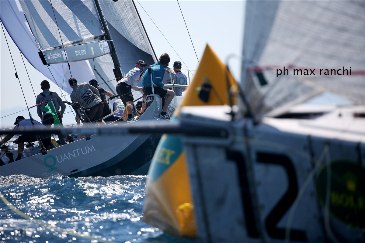 Vento ancora dal mare, più stabile, il pin sembra la meta di un pò tutti, Alegre, Azzurra e Quantum sono li, il team italiano infila Alegre ma non riesce ad avere lo spunto di Quantum, per Parada e compagni un’inizio in salita, incroci difficili e virate dietro le barche che precedono, un vero calvario. Quantum e Platoon hanno il passo giusto, le due barche che sviluppano lo stesso progetto velico da due anni danno spettacolo, Hutchinson entra in fase con il vento e non ce n’è per nessuno. Alle spalle, Platoon e Gladiator fanno una regata precisa e con un ottimo passo. Azzurra fatica molto dopo un inizio in salita. Gli americani vanno spediti verso la vittoria, ma la notizia del giorno è che Platoon con il secondo posto di manche si prende la vetta della classifica di questo Rolex TP52 World Championship di Scarlino e della classifica generale delle 52 SUPER SERIES. L’armata tedesca una volta a terra si gode questa splendida giornata, avranno un asso nella manica, forse la costanza che solo loro hanno saputo dimostrare in queste prime quattro prove disputate, media infallibile con un 2,3,2,2 a conferma della consistenza del gruppo guidato da Harm Müller-Spreer. Per Quantum è Azzurra, rispettivamente a 3 e 9 punti di distacco dal leader è ora ti tirar fuori ogni risorsa, domani c’è la regata costiera, un’incognita per tutti, il meteo cambierà ancora, sarà lui il grande protagonista da domare?